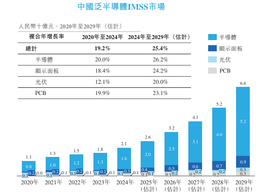 按销售收入计,中国泛半导体IMSS市场规模预计将由2020年的人民币11亿元增至2029年的人民币66亿元,2024年至2029年的复合年增长率为25.4%。