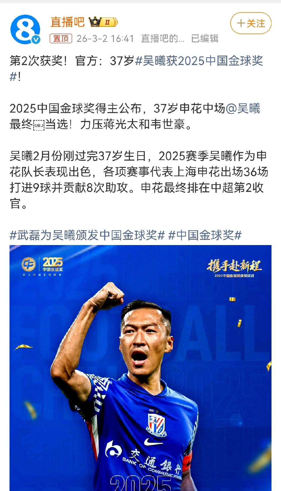 吴曦还能拿“中国足球金球奖”是我万万没想到的。 不是质疑吴曦的能力,你能想象,如果一个国家,37岁的梅西或者C罗还在拿金球奖,那只能说明年轻人不行,断档了,何况吴曦的球技绝对没有梅西或者C罗那样在自己国家鹤立鸡群。 并且,一个自己国家的金球奖得主,竟然连国家队替补阵容都进不去?