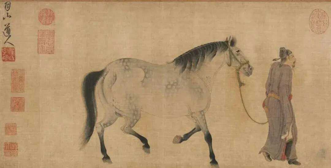 元 任仁发《三骏图》。任仁发(1254—1327 年),字子明,号月山道人,其先祖为邳县(今属江苏省)人,后迁居松江(今属上海)。擅长书法、绘画,画马尤其出色,曾奉敕画御苑马厩中的名马,得到皇帝的赏识。此外任仁发还是一位很有成就的水利专家,曾先后主持修治浙西吴松江、大都(今北京)通惠河等工程,并有水利工程著作传世,在中国水利史上做出过有益的贡献。卒年七十四。这就是中国风遇见艺术