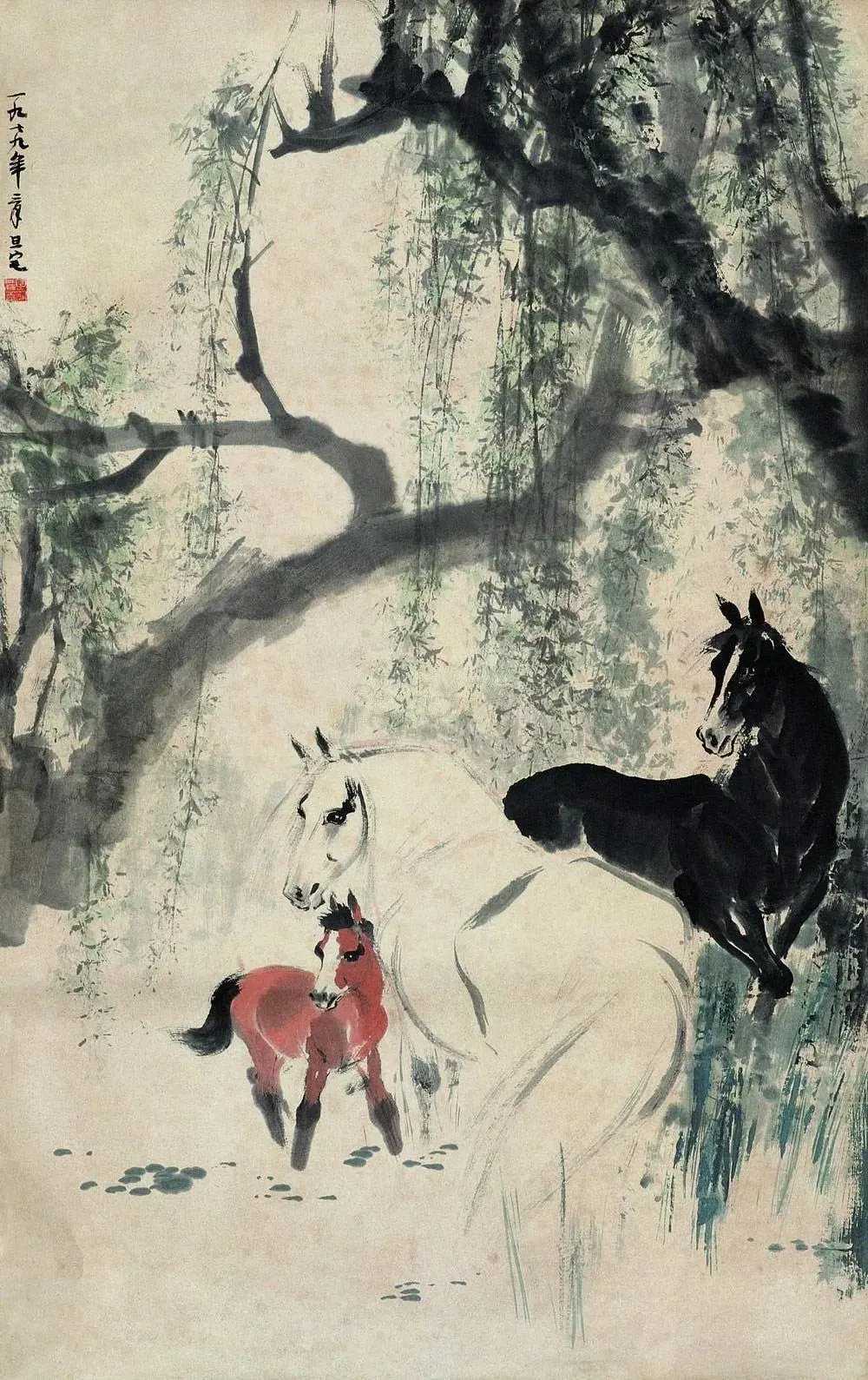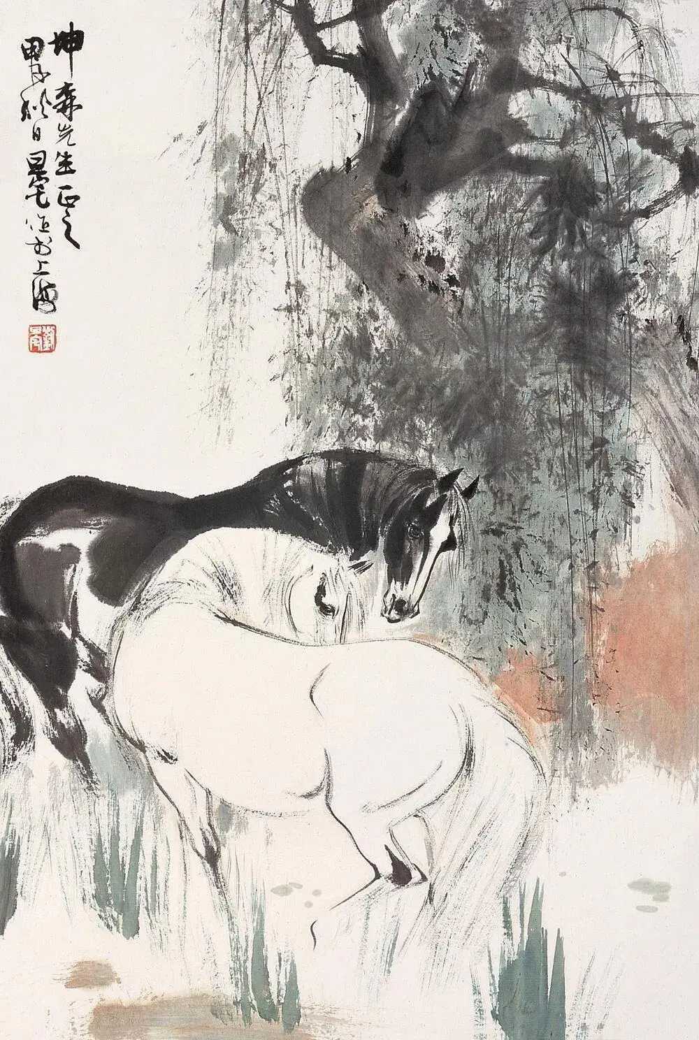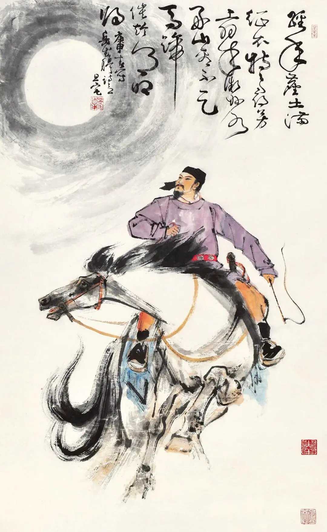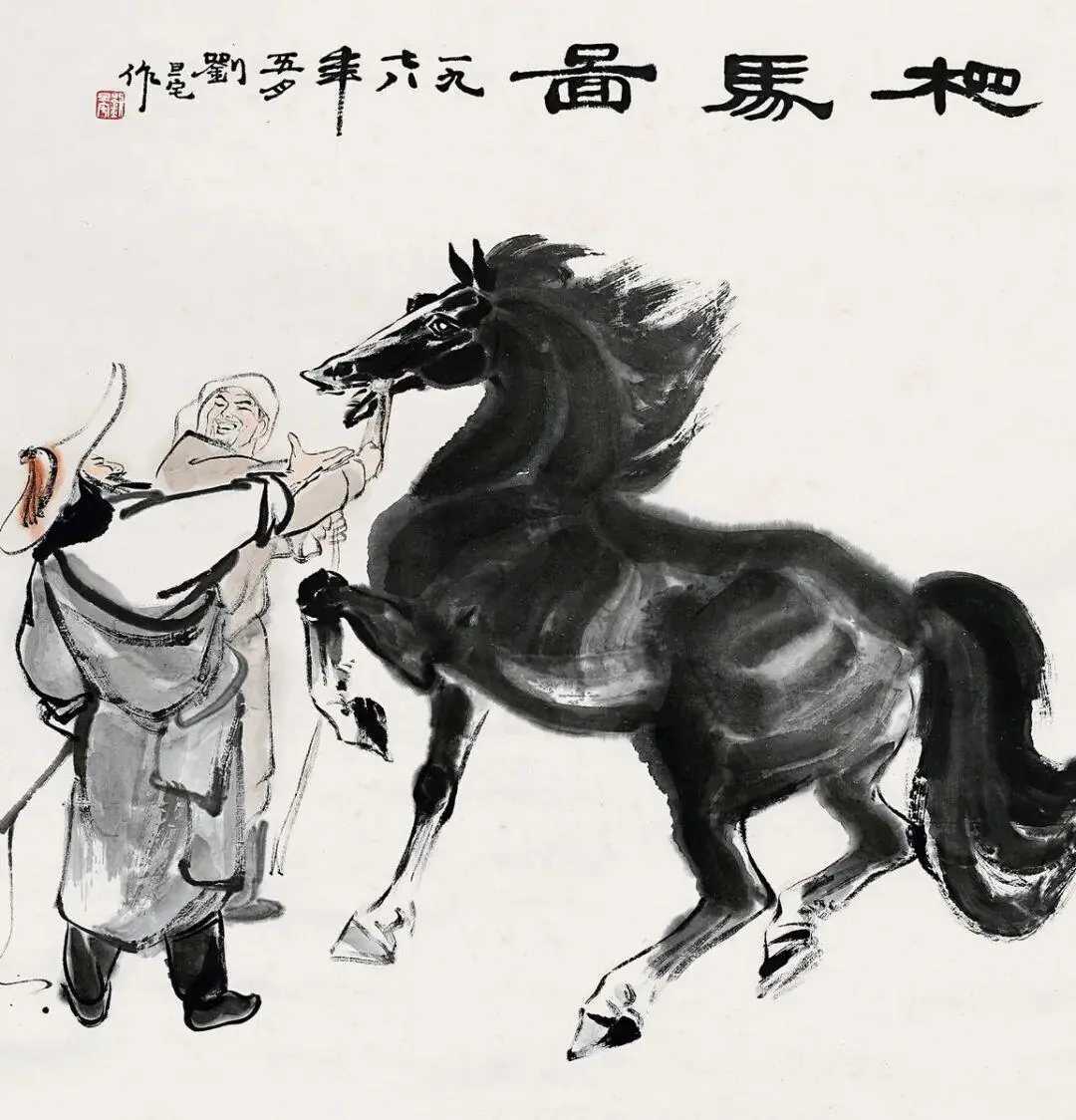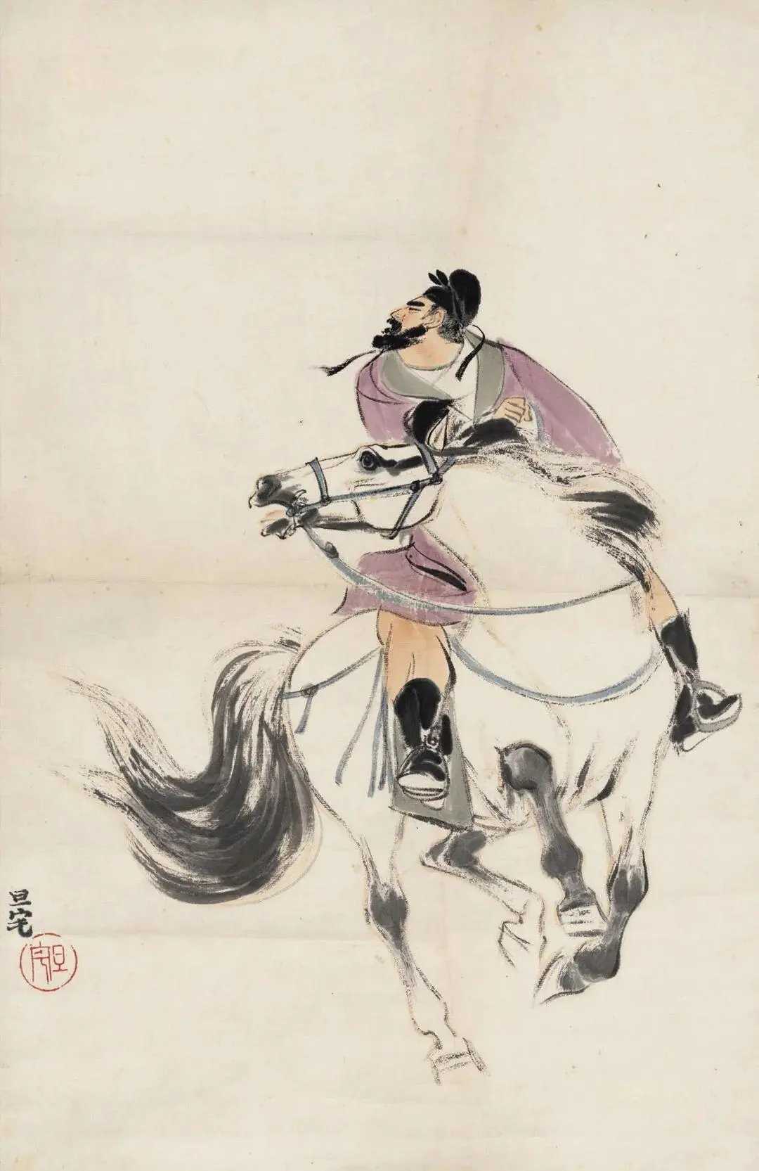 刘旦宅画马。刘旦宅(1931—2011),原名浑,又名小粟,后改名旦宅,别名海云生,浙江温州人。他擅人物,兼花鸟,取法汉唐人物、宋元山水及陈老莲和八大之花鸟,广泛吸取古人之长而融会贯通,工写兼长。刘旦宅笔下的马,豪放之风洋溢于画幅之间。他的笔墨如骏马奔腾,生动传神,流露出无拘无束的精神。在画中,深情厚意宛如人间至诚,让人心生敬仰。这就是中国风遇见艺术