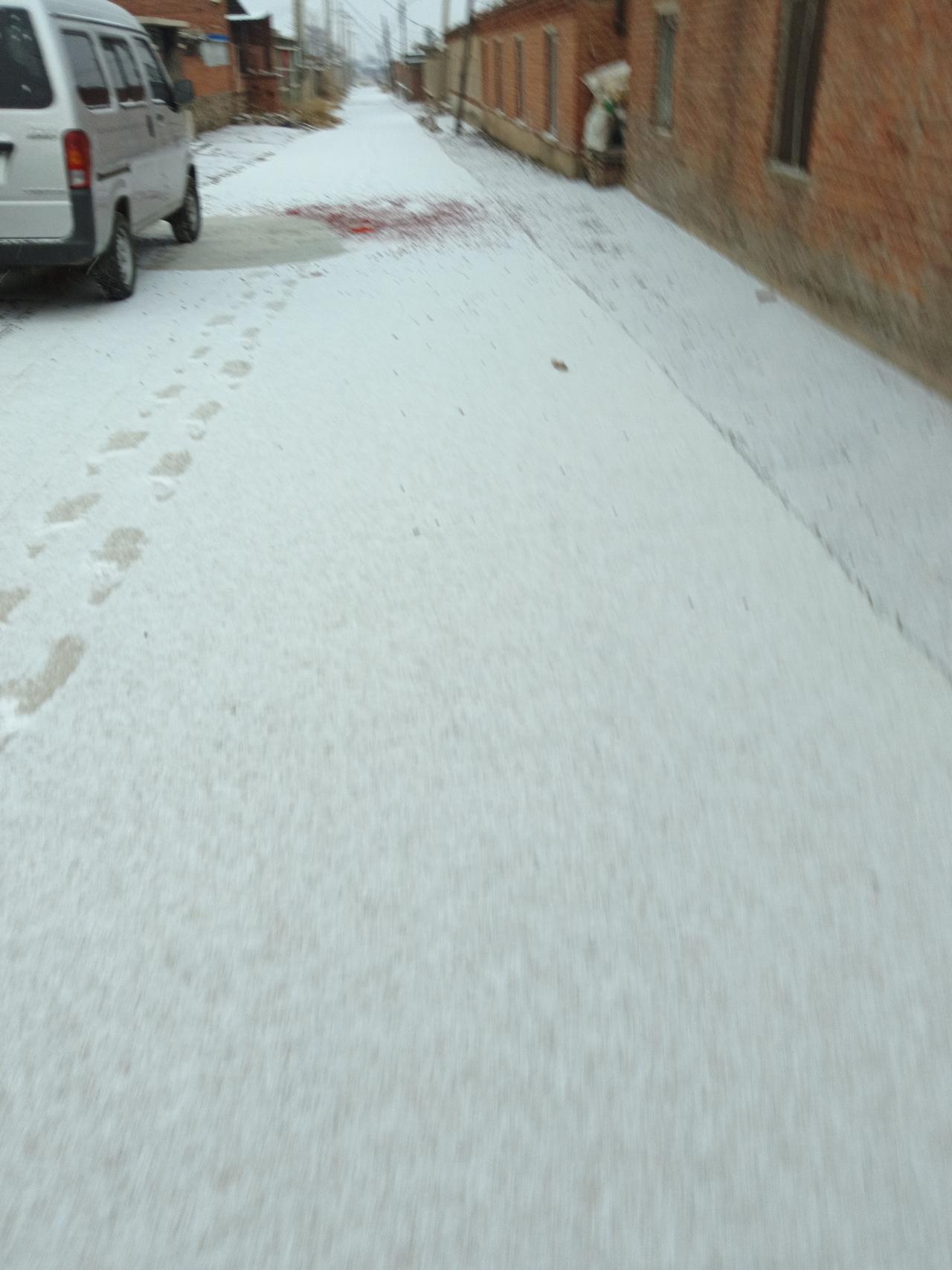 今天早晨7点钟东北农村下雪了,雪天路滑,开车要小心。 路上随手拍下的雪景。马路