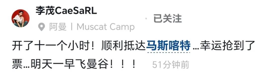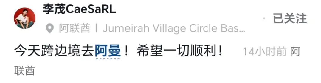 揪心转安心!李茂弦子一家撤离迪拜,11小时奔波抵阿曼抢票成功 中东局势突变,李茂弦子一家五口迪拜度假遇困,住处距遇袭帆船酒店仅数百米,多趟回国航班接连取消,全程揪心。 他们果断租车跨境,历经11小时颠簸抵达阿曼马斯喀特。原订返京航班再度取消,一家人连夜刷票,终于抢到飞往曼谷的机票。 途中行李繁多,全家以泡面果腹,9岁儿子淡定从容。一路波折不断,所幸全员平安。世事无常,平安才是最大底气,也愿世界早日归于平静。