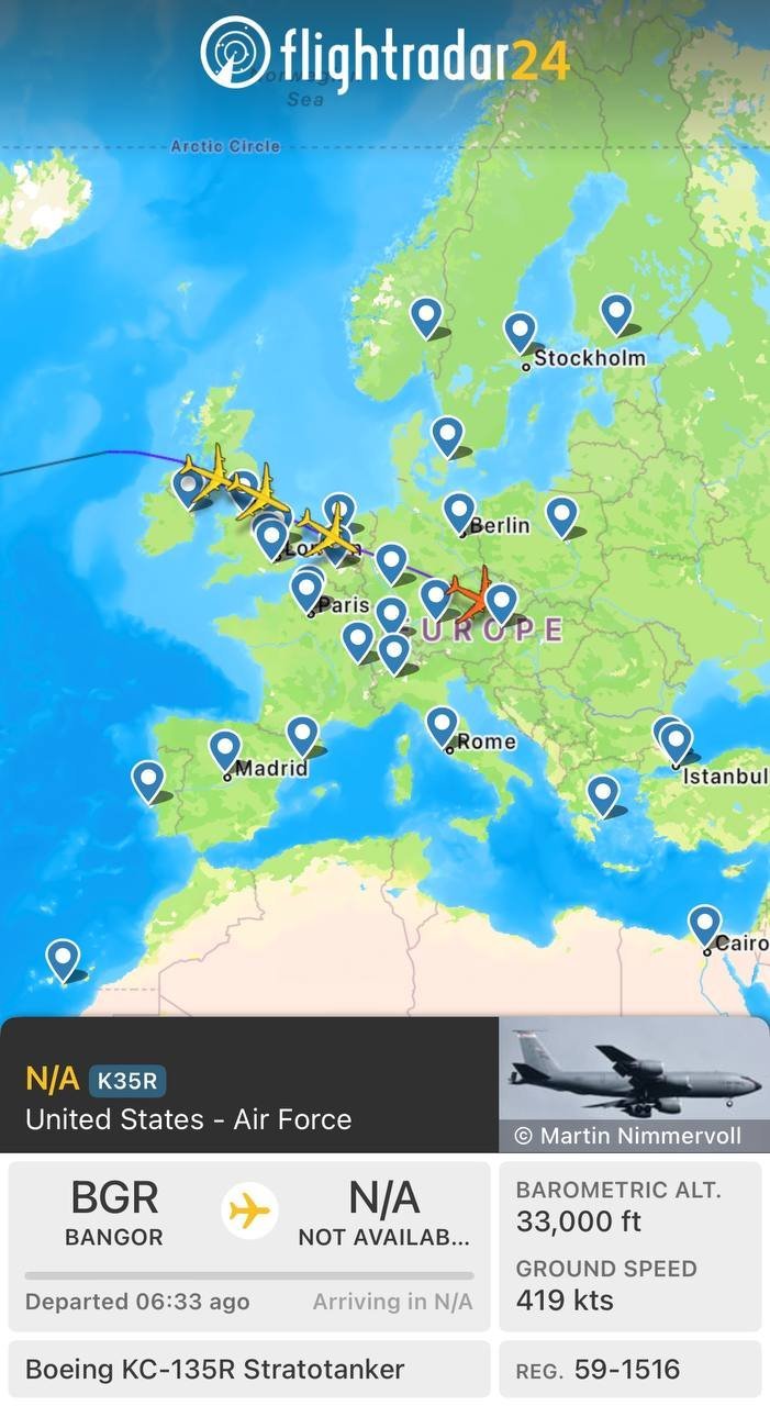 🔻USAF的新一批超过15架KC-135加油机队向欧洲和中东转场。🔻这意味着