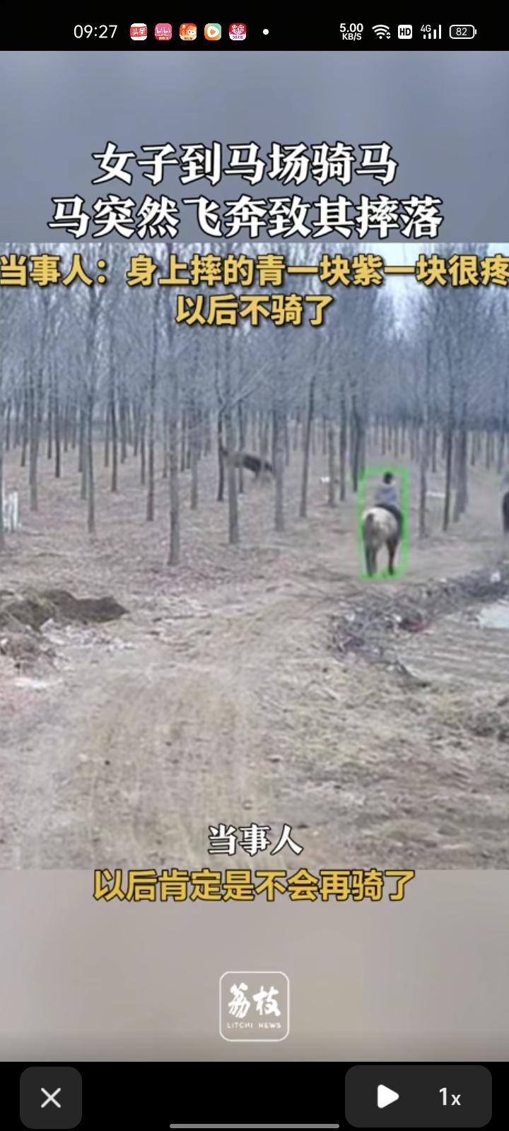 2月28日,河北保定。女子去马场骑马,马突然飞奔致其整个人摔落,身上摔得青一块紫