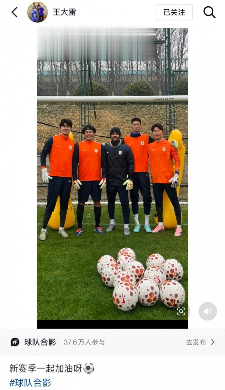 直播吧3月3日讯昨晚,王大雷更新社媒,晒出和队友于金永、孙启航、刘骐玮以及泰山队门将教练的合影,并配文写道:“新赛季一起加油呀!”