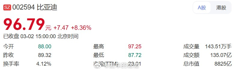 据说伊朗的二手车行情非常美丽。虽然“富贵险中求”的道理从小听到大,但真的面对如今的局面,我是真的不在乎什么“富贵”了。同样的逻辑,现在美国和他的父亲在波斯湾狂刷大火箭,国际油价也跟着导弹飞升上天,真的面对可能突破10元/升的油价局面,谁都不在乎电车的短板了。不过可能因为避险情绪提前释放,黄金价格并没有明显上涨,而油价也没有在轰炸第一时间就飞天,而是等到伊朗封锁海峡后才开始上涨。反应更慢的是新能源车企的股价,而比亚迪则选择主动出击,官宣在3月5日发布颠覆性技术——这属于强行召唤注意力了——还真的挺有效,A股大涨超8%,H股上涨超4%,主力资净流入。其实你看其他新能源权重股价,不难发现比亚迪上涨并非是因为油价飙升,因为其他家股票都按兵不动嘛,本质上还是业界看好比亚迪的发展势头,以及3月5号可能掏出来的大宝贝。我看其他答案都在猜,各大平台也都有博主在预测了。讲真,自打去年上半年一通黑科技轰炸,我已经不敢预测了。船夫哥兜里的黑科技,让我们就两个地方看不懂——这也看不懂、那也看不懂。不过今天有一个数据,非常吸引我:2月份比亚迪销售19万辆汽车,海外销售10万台。虽然数据不高,但首次海外销量超过国内销量。国内市场那么卷,海外卖的越多,财务也就越健康。另外,国外车企躺在原有的技术路线上吃了半个世纪的红利了,也该享受一下船夫哥黑科技的小小震撼。所以比亚迪海外路线,我持续看好。以后说不定,每个月海外销量都比国内高。老是自己人卷来卷去多没意思,咱们一起出海搞事情才是前途光明。比亚迪比亚迪汽车