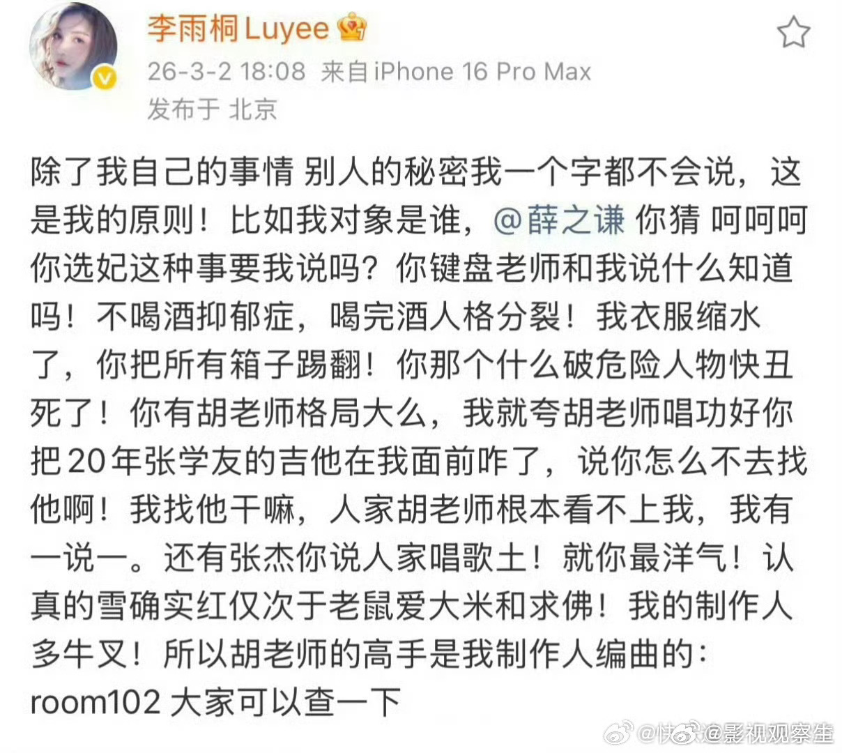 谢娜发文喊话薛之谦 李雨桐昨天爆料薛之谦说张杰唱歌土谢娜今早霸气护夫 喊话薛之谦