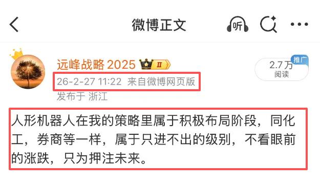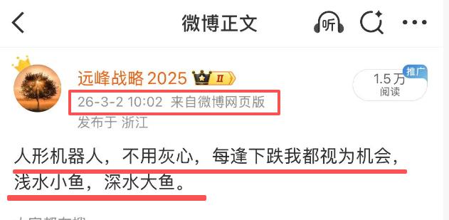 人形机器人最近一直在震荡调整,但我依旧看好相关板块,这两天我一直在强调:人形机器人,不用灰心,每逢下跌我都视为机会,浅水小鱼,深水大鱼。在我的策略里属于积极布局阶段,同化工,券商等一样,属于只进不出的级别,不看眼前的涨跌,只为押注未来。 这个方向我坚定不移地看好,不因为K线图的震荡而改变看法。 另外,银河通用宣布完成25亿元新一轮融资,创下近年行业单笔最大规模,也刷新了2026开年纪录。