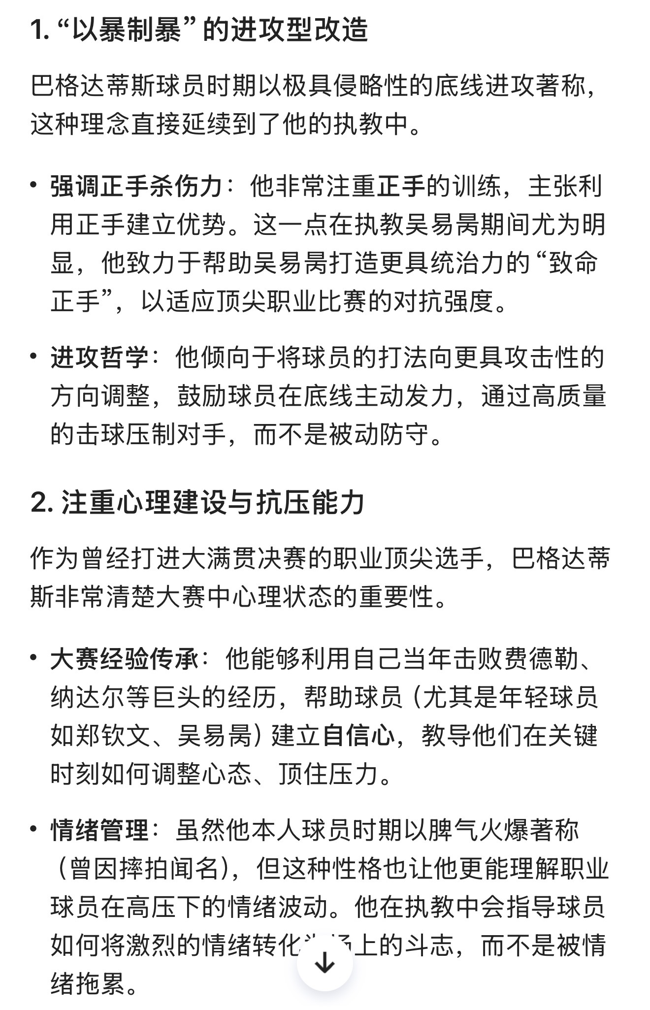 问了一下千问巴格达蒂斯的执教风格,你认为他能给郑钦文带来改变吗?
