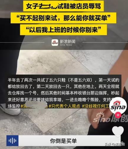 山东滨州,一名20岁女生到商场某品牌店试鞋,因穿搭与运动鞋不搭便走了,第二天她又去那个店,试完后说再逛逛。谁知,店员指着她骂:滚出去!买不起就别来试!你那能你就买单?双方随即发生冲突,事后,女生倍感委屈,将此事发到了网上,很快引起网友关注。而后店里负责人联系她道歉,可没想到,女生公布与负责人通话后,事件再次升级! 那天小周看中了一双白色基础款,问有没有39码。店员低头玩着手机,抬眼看了她一眼,说:“没有,要的话调货。” 语气平平,听不出热情,也谈不上冷漠。小周试穿了38码,脚趾顶得难受,又问有没有39码现货。 对方还是一句:“没有,要就调。”既没多介绍款式,也没推荐替代款。小周觉得自己今天穿的是裙子,和运动鞋不太搭,也没太上心,就说算了,转身走了。 她本来以为事情就这样结束了。 第二天,她又来到商场。这次是专门想买鞋,穿了牛仔裤,想着好好试几双。她再次走进那家店,还是那几个店员。她没有多想,开始挑鞋。 她试了两三双,38码偏小,40码又有点松。她问有没有39码新款。店员这次倒是主动推荐了一双绿色的,样子挺特别。货架上只有样鞋,没有39码。 小周客气地说:“能不能帮我去仓库拿一双39码试试?” 店员脸色有点不耐烦,但还是转身进了仓库。几分钟后拿出来一双。小周坐在试鞋凳上,把鞋带松开、套脚、站起来走了几步。鞋子大小合适,但她又觉得颜色有点挑衣服。 “我再逛逛吧。”她把鞋脱下来,放回盒子里,语气很自然。 谁知道,这句话像是点燃了什么。 那名店员脸一下子沉下来,声音提高:“你到底买不买?昨天来一次,今天又来试,试来试去不买!” 小周一愣,还没反应过来,对方突然指着门口:“滚出去!买不起就别来试!你那样子能买单吗?” 那一刻,店里空气仿佛凝固了。旁边有两位顾客正在看鞋,也停下动作。小周脸一下子涨红,耳朵发烫。 她从小到大第一次在公共场合被人这样骂。 “你什么意思?我试鞋不行吗?”她声音有点发抖。 店员却越说越冲:“试半天不买,不是耍人吗?没钱别浪费我们时间!” 双方的声音越来越大,店里气氛剑拔弩张。闺蜜赶紧拉着小周往外走。走出店门,小周的眼泪一下子掉下来。 她不是买不起,只是想选一双合适的鞋。 回到家后,她越想越委屈。她把事情经过写成文字,配上当时录下的一小段音频,发到了社交平台。她没有夸张,只是原原本本讲了经过。 没想到,一夜之间评论上千。很多网友留言:“试鞋不买很正常”“这种服务态度太差”“谁还敢去这家店”。 事情很快发酵。 第二天下午,店里负责人联系了她,说想沟通一下。小周心里其实还抱着一丝期待,希望能听到一句真诚的道歉。 电话接通后,对方语气还算客气,但开口第一句却是:“视频能不能先删掉?对我们影响很大。” 小周说:“我更关心的是,你们员工骂顾客的问题。” 负责人轻描淡写:“年轻人嘛,情绪有点冲动。她也是被你试来试去弄得有点急。” 这句话像一盆冷水。 小周问:“所以是我错了?” 对方马上解释:“不是这个意思,我们可以私下给你一点补偿,送你一双鞋也行。你把视频删了,这事就算了。” 全程几乎没有一句“我们做得不对”,更没有提到对店员进行处理或培训。重点始终围绕着“删视频”“影响不好”。 小周挂了电话,心里反而更难受。 她把通话录音也整理出来发到了网上。舆论再次升级。网友纷纷质疑:道歉的重点到底是维护品牌形象,还是反思服务问题? 有人说,现在逛街试穿本来就是消费者权利;有人说,销售有业绩压力,但也不能把情绪发泄在顾客身上。 几天后,商场方面介入协调。据说涉事店员被停岗处理,门店也贴出了道歉声明。但很多网友依然不买账,认为那份声明措辞官方,缺少诚意。 小周后来在更新里说,她并不是想把事情闹大,只是当时那句“买不起别来试”真的刺痛了她。 她说:“我20岁,可能穿得不算名牌,但这不代表我没有消费能力。就算我真的不买,试鞋也是我的权利。”