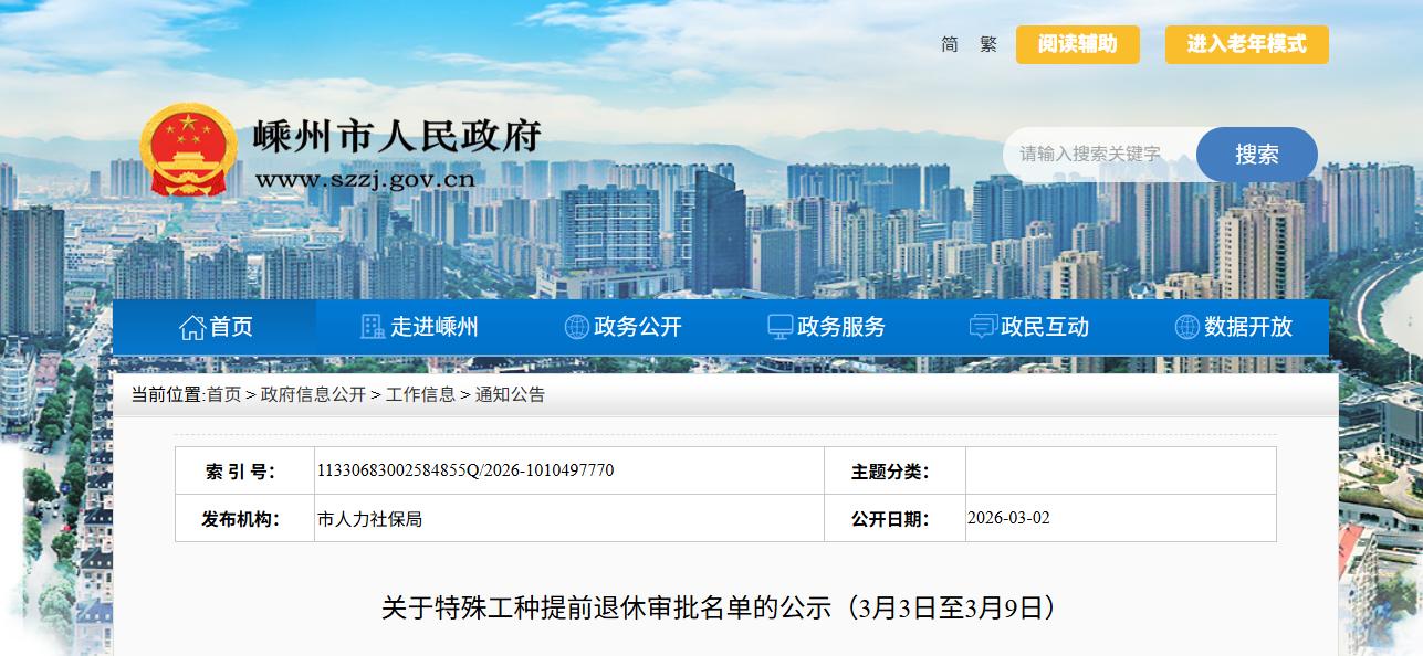 关于特殊工种提前退休审批名单的公示(3月3日至3月9日)