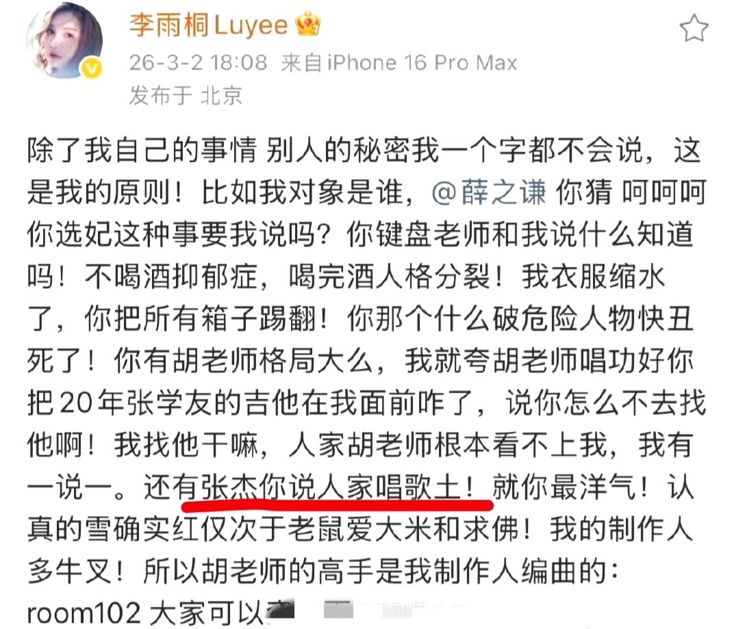 从节目吐槽到谢娜喊话:薛之谦与张杰的多年纷争,终于迎来爆发点 2026年3月,内娱被一场“陈年旧怨”刷屏——谢娜发文怒怼薛之谦,要求其向张杰道歉,让这场埋藏多年的争议彻底进入公众视野。 这场纷争并非一时兴起,而是积怨已久: 1. 争议源头:薛之谦早年在综艺中的一段犀利吐槽,“没找有钱/比我红的女友发片”等言论,被舆论广泛解读为内涵张杰,尽管存在“另有指向”的猜测,但张杰还是成为了舆论靶心,默默承受多年非议。 2. 导火索点燃:近日李雨桐的爆料中直接提及张杰,将这段旧账重新推上风口浪尖,也打破了多年的沉默僵局。 3. 全面爆发:面对薛之谦的持续沉默,谢娜选择挺身而出,发布千字长文细数张杰的奋斗历程,控诉薛之谦当年言论引发的伤害,正式提出道歉要求。 一边是谢娜的强硬喊话,一边是始终沉默的薛之谦,这场牵扯多方的舆论风波,后续究竟会如何收场,全网都在静待回应。 薛之谦张杰多年纷争始末 谢娜发文维权