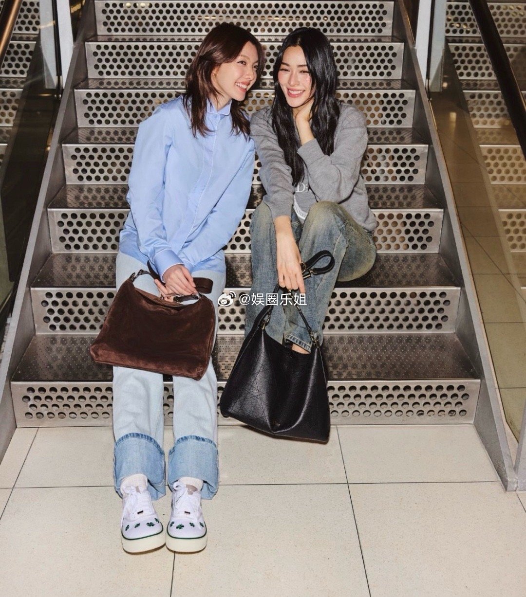 机场即秀场|人气CP邝玲玲与Orm合体亮相,身着 Dior 造型启程巴黎时装周。灰蓝叠搭清爽随性,手拎全新DIORLY手袋,松弛感拉满!