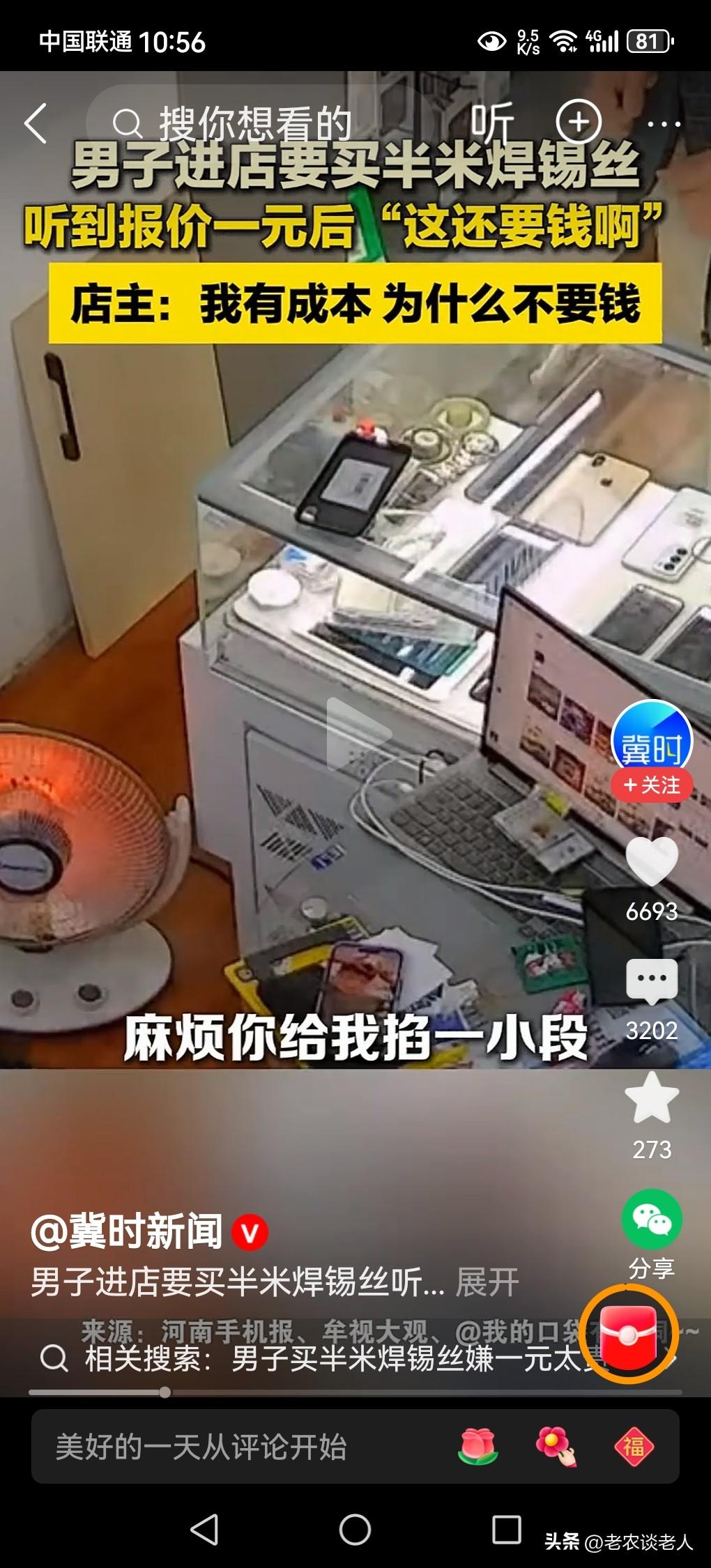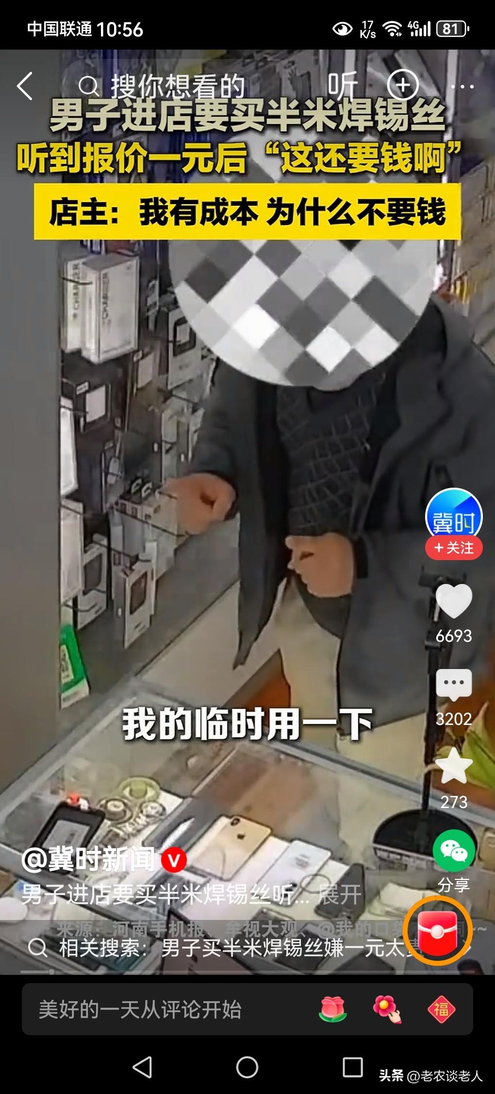 男子买半米焊锡丝嫌一元钱太贵! 在我们的日常生活中,当你缺少一件急需使用的物件时,必须要到大街上商店里去购买。 但是,有些物品一时间,市场上是很难购买到的,该怎么办?只能到一些与此相关的人家去购买,或者熟悉的人家去索取,才能寻找得到,才能解决急需之用。 据媒体3月3日报道,一个男子因家里需要一些“焊锡丝”,要到商店里去购买。这种商品不是一般普通商店里能够买到的,是一种专业维修店里才有的物件。因此该男子只能到家电维修店里去寻找。 一般情况下,家电专业维修店里的这些焊锡丝,是没有向外供应的,都是店内部维修使用的耗材。 这位需要焊锡丝的男子与上维修店的老板并没有任何瓜果,是一面不相识的陌生人,因此该男子向维修店里的老板说要半米长的焊锡丝的时候,老板为了方便和满足顾客心愿,收取适当的焊锡丝的成本,卖一点点给顾客是一种必然的事情。 老板给半米长的焊锡丝,让该男子付款一元成本钱。该男子认为老板是十分小气,这么一点点东西,还要收钱?认为老板出价一元钱,太贵了。 本人认为该维修店老板,是出于方便顾客之心,适当收取成本钱给顾客,是出于对顾客的一种关心和照顾,否则他是没有焊锡丝出售的。 本人认为该男子认识不妥当,因为他与该维修件没有任何关系,是生脸见生人,既然维修店老板同意一元钱半米的焊锡丝卖给他,是出于一种善意,出于一种关心和照顾顾客表现。 该男子就不应该有这种想法,虽然半米长的焊锡丝值不了一元钱,但是该男子急需这半米长的焊锡丝,在任何商店的是很难购买到的。他不要认为老板心太黑了,把人家的善意和关心顾客当做驴肝肺,半米焊锡丝收取一元钱,并不算贵,是该男子的价值观是存在有很大的偏见而已。 以上是本人观点,如有不妥,请大家在留言区中留下你宝贵的意见,并积极参与评论。