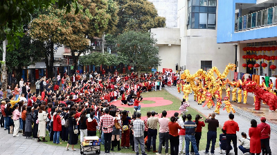 “一进校门就看到舞狮和‘福’字,感觉特别喜庆。”湾仔小学学生叶家祯兴奋地说,“我祝同学们学业进步、马到成功!”