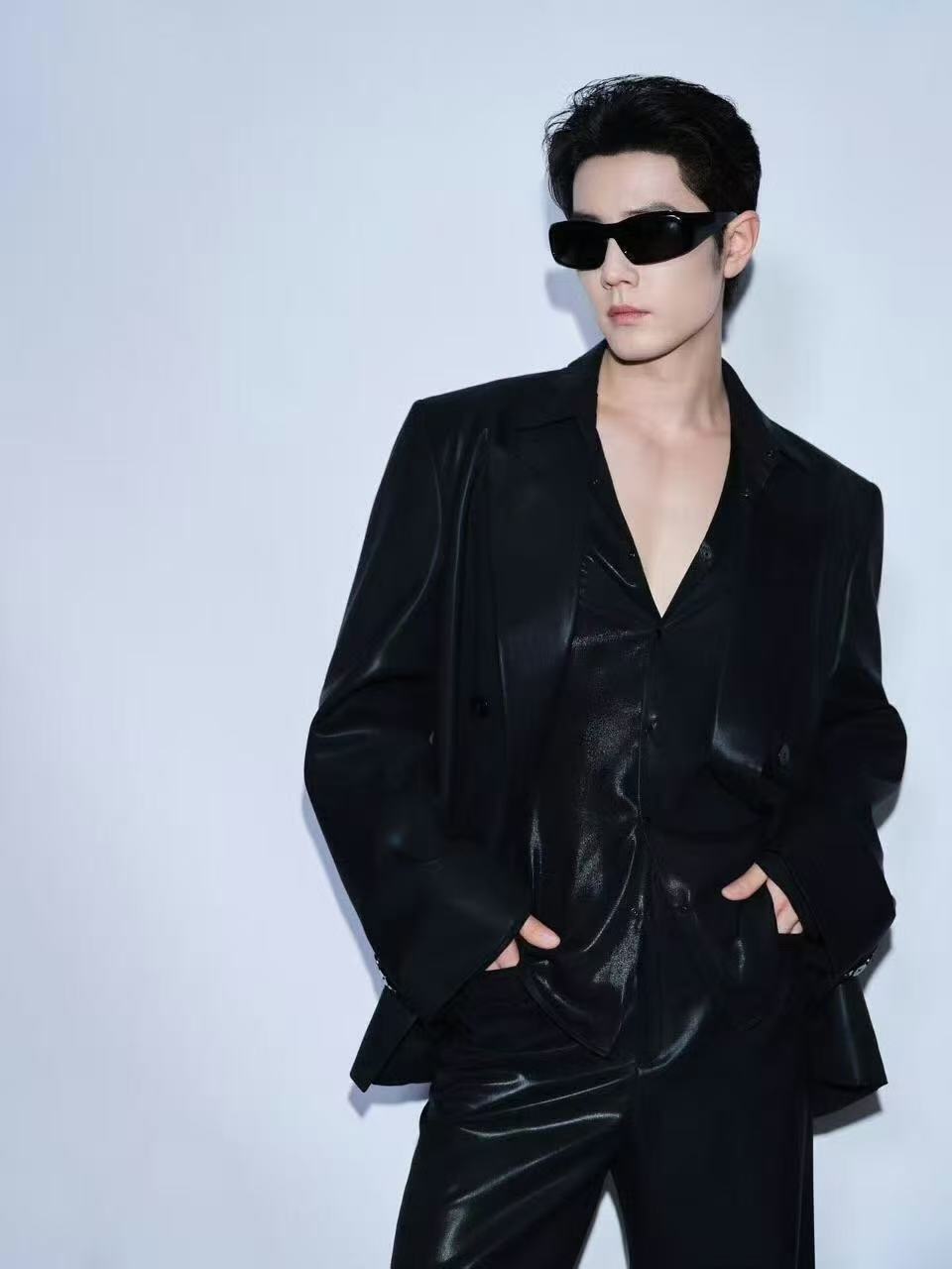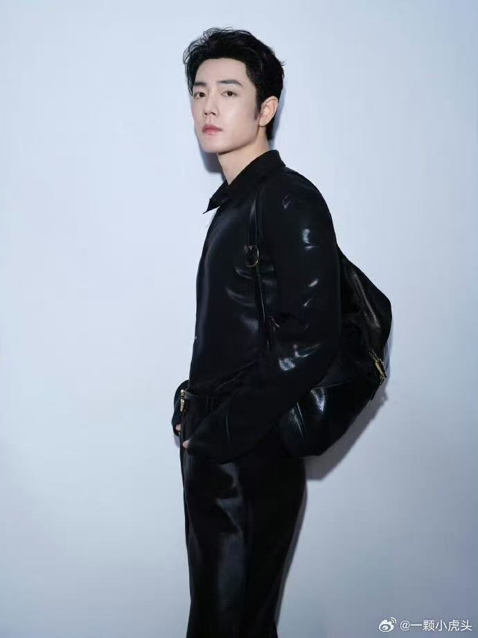 肖战紧身皮衣腹肌好好看肖战皮革T恤完美勾勒腹肌 好A好欲肖战