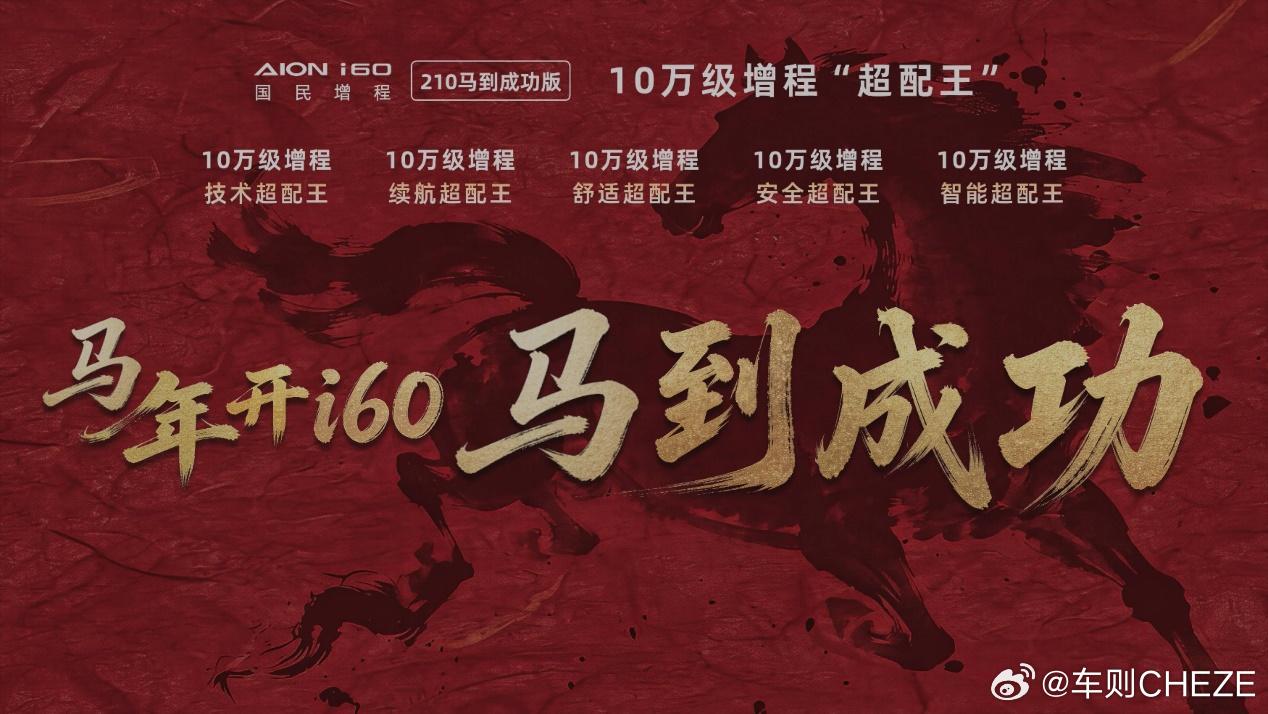 定价10.28万元,埃安i60加推埃安i60国民增程 210马到成功版。2026年3月2日,埃安i60加推埃安i60国民增程 210马到成功版,定价10.28万元,内置1.5L增程专用发动机+电机结构,搭载29 度大电池,210公里纯电续航,综合续航里程1240公里,支持3C快充。