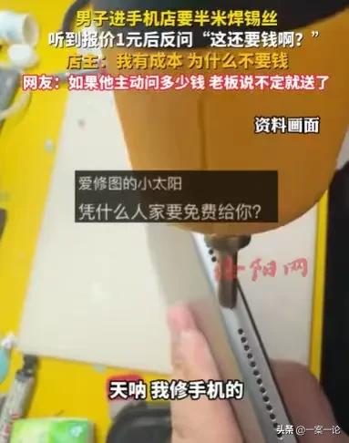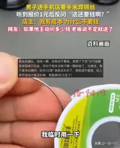 陕西,一男子来到一家手机店,要半米焊锡丝,他说没必要单独买一卷,店主一看,不想得罪任何顾客,就要收他1元钱,结果他却反问,这点焊锡丝还要收钱,成本不过几元而已,店主说:我也有成本,为什么不要钱? 店主看着气呼呼离开的顾客,他无奈地摇了摇头,感到好气又好笑,他从来没有遇到过这样的事情,居然有人连一点焊锡丝也想白嫖,连一元钱都不愿意给,实在令人感到不可思议。 这卷焊锡丝,店主买的是进口的,是非常好的焊锡丝,成本都不止几元。 其实如果这个顾客一开始进来,就说要买一点焊锡丝,半米焊锡丝,其实就一点点,店主有可能不好意思收钱。 但是这个顾客,进来是说要半米焊锡丝,他也是出于尊重顾客的自尊心,才想着收一元钱意思意思一下,没想到最后反而得罪了顾客。 说起这件事,店主真的太无奈了。 当时他正在埋头工作,看到有一个男子进到他店里,顾客进店,生意来了,店主当然是热情招待,他也不知道这名男子到底想要什么。 还没等他开口,询问男子想要什么东西,男子进门就问了,有没有焊锡丝。 店主一看顾客是有目的进来的,就赶紧回答说有。 男子一听说有焊锡丝,脸上也露出了一丝惊喜,他没有白跑一趟。 他赶紧说:“我就要一点焊锡丝,临时用一下,单独买没有必要,你就掐一小段,大概是半米这样子。” 一看对方只是要一点焊接丝,店主并没有不耐烦,他就想着,男子这么点焊锡丝,白送给他,不妥,还是收一点钱,顾及顾客的自尊。 于是他就跟男子说,一块钱,他想着这一块钱,也不能干什么,但是起码可以稳住这个男子,说不定,因为他给的这半米焊锡丝,只要一元钱,男子会念着他的好,后面会常来他的店。 结果男子一听说,半米的焊锡丝还要一元钱,他就反问道:“这也要钱吗?” 他以为,自己只是要这么点焊锡丝,店主也不至于要收钱,现在店主连一元也要收,这太没有格局了,他很惊讶。 店主更惊讶,本来收一元钱,就已经相当于白送给他了,男子居然还想着不给钱,想着白嫖,店主不耐烦了。 他说道:“我买的这卷焊锡丝,也是要钱的,为啥不要钱?” 结果男子接下来说的这句话,让店主更惊讶了,男子居然说:“这一卷焊锡丝,不过只要几元钱而已。” 这话男子也能说得出口,难道就因为这卷焊锡丝,是几元钱买来的,他就可以不花钱要走别人的东西? 更何况这卷焊锡丝,根本不止几元钱,这是进口的,质量非常好,几十元都买不来,凭什么要白送给他。 他再次跟男子说道:“这也是要钱买来的,要收钱!” 一看店主坚决要钱,男子最后生气了,转身就走,离开时还不忘说一句话:“算了,不要了!” 这样的男子,确实让人感到有些不可理喻。 店主不过是象征性地收一元钱,就是这么一元钱,他都不愿意给。 他根本就没有想过要给钱,就想着让别人白白地把东西给他。 店主是开门做生意的,就算是几元钱拿来的东西,他把东西卖出去,收回成本或者挣些钱,这也是很正常的。 不正常的是这个男子,从一进店,就没有想过要给钱,就想着让别人白白地把东西给他,这样的人真的是很不受欢迎的,他是贪便宜贪习惯。 本来这卷焊锡丝就是店主的,如果男子不是来买焊锡丝,店主就有权不把焊锡丝给他,这是他的合法财产。 《民法典》第267条规定:私人的合法财产受法律保护,禁止任何组织或者个人侵占、哄抢、破坏。 因为是个人的合法财产,店主有权处置自己的东西。 反而是男子,如果他要这点焊锡丝,就应当付应该付的钱,他进店要东西,和店主就构成合同关系的,男子是需要履行自己的支付义务的。 《民法典》第509条规定:当事人应当按照约定全面履行自己的义务;当事人应当遵循诚信原则,根据合同的性质、目的和交易习惯履行通知、协助、保密等义务。 现在男子不愿意履行自己的支付义务,店主当然有权不给焊锡丝。 那么你对此事有何看法呢?