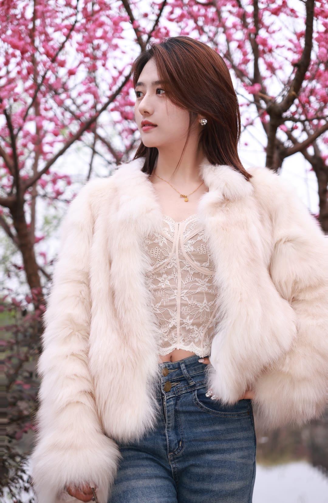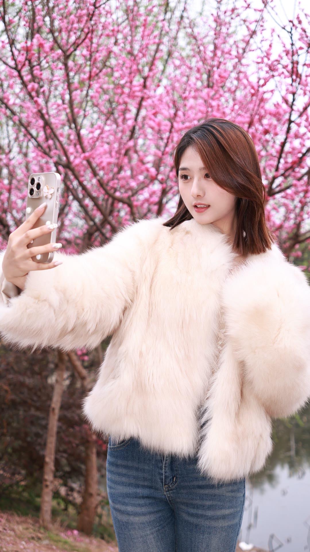 樱花树下,自拍少女,粉色浪漫,春日气息