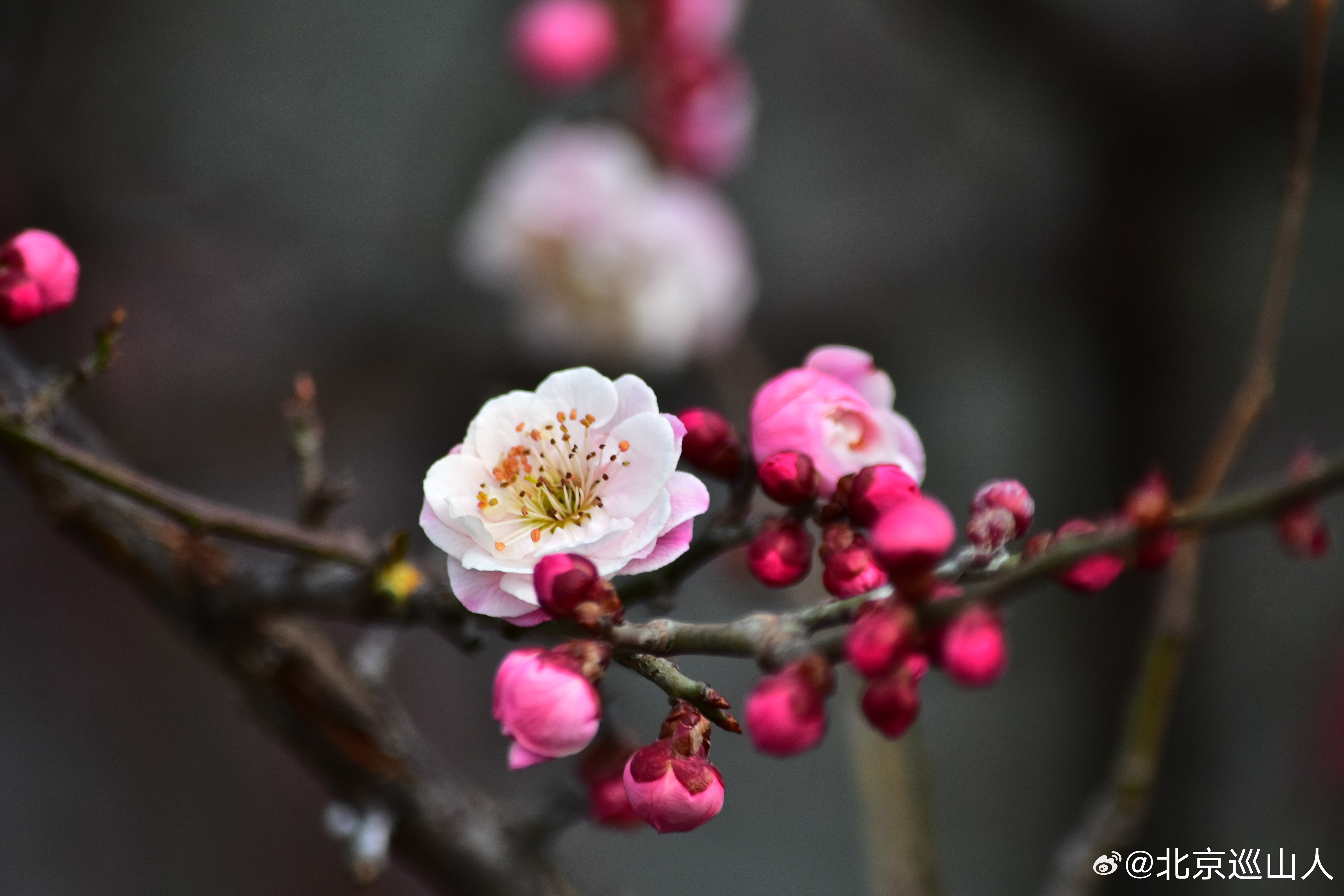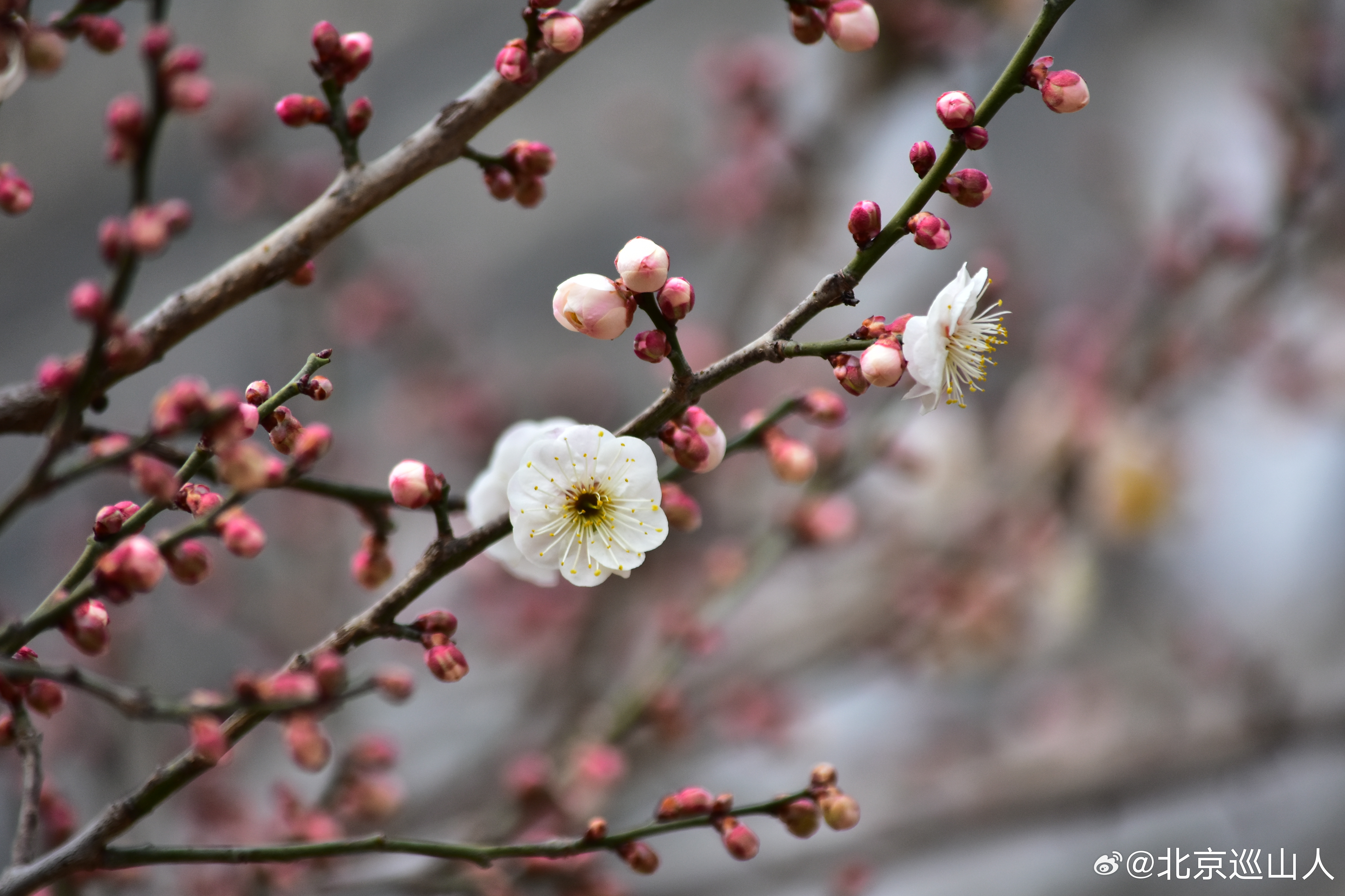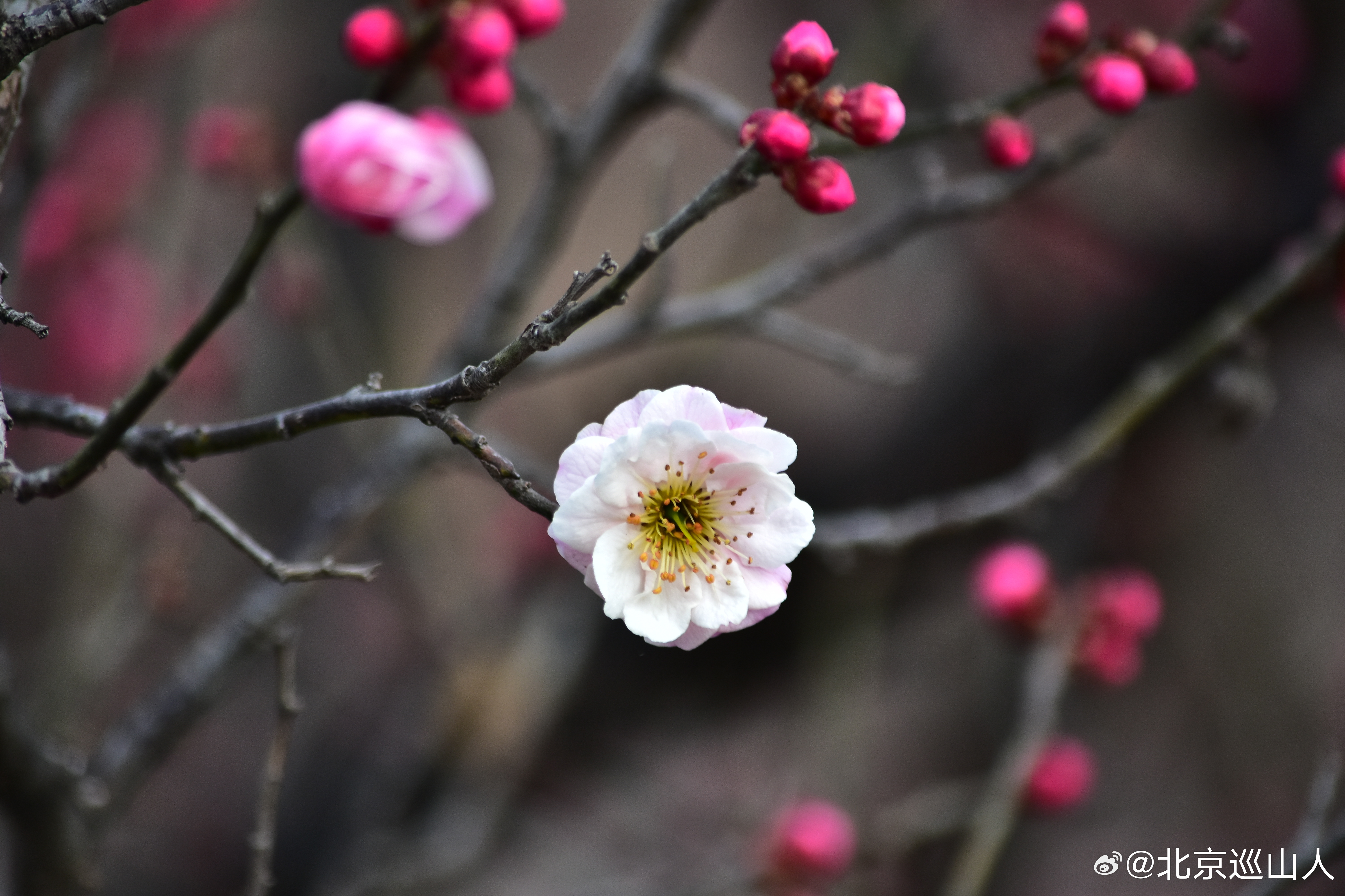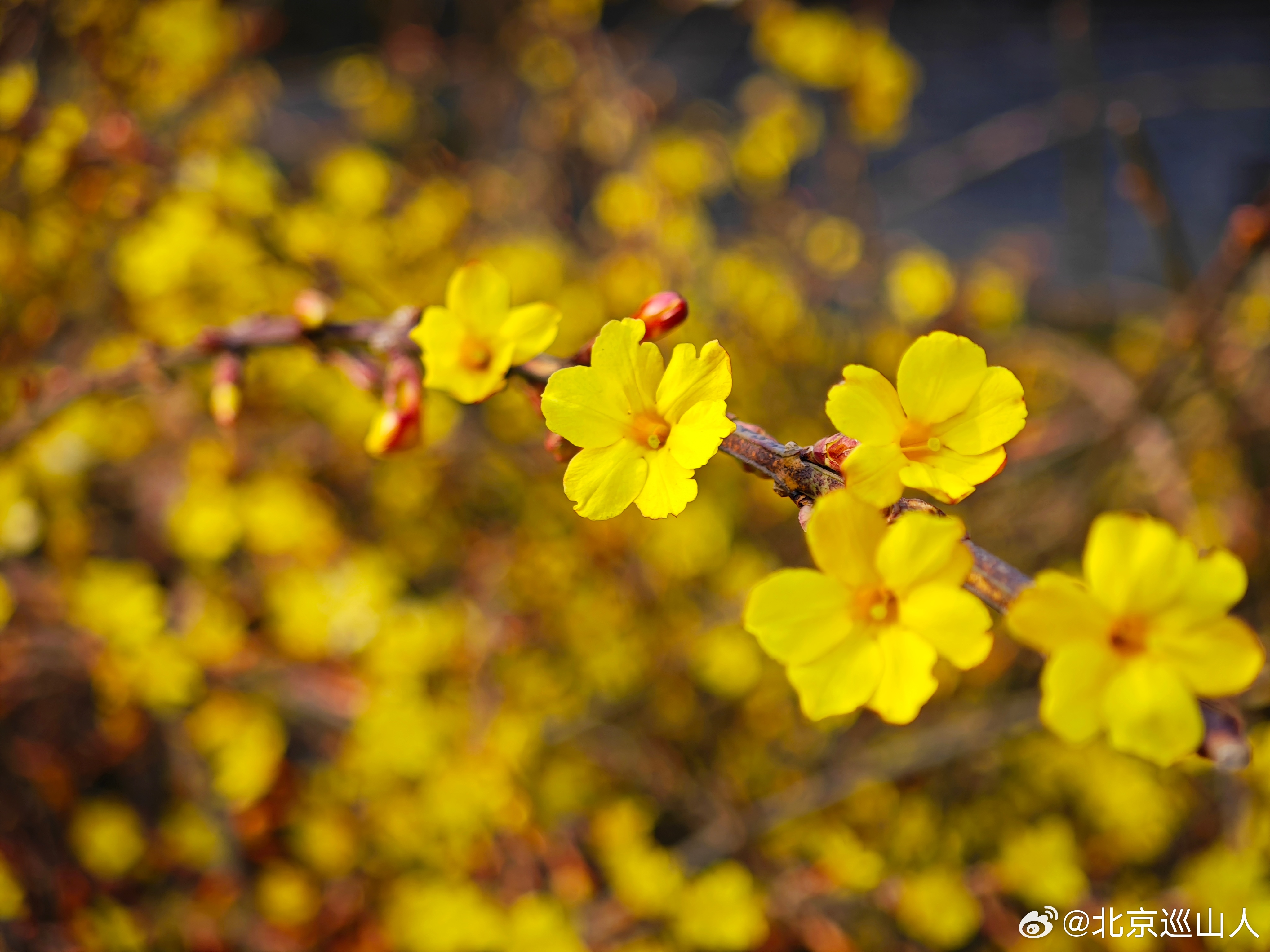 北京的花儿开了,明城墙、护城河的梅花开始吐苞开放,路边的迎春花开了。摄影