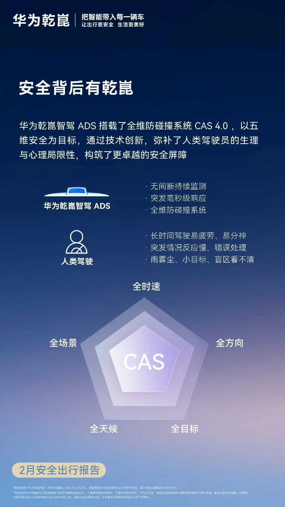 华为智能汽车解决方案 BU CEO 靳玉志分享了华为乾崑 2 月安全出行报告。