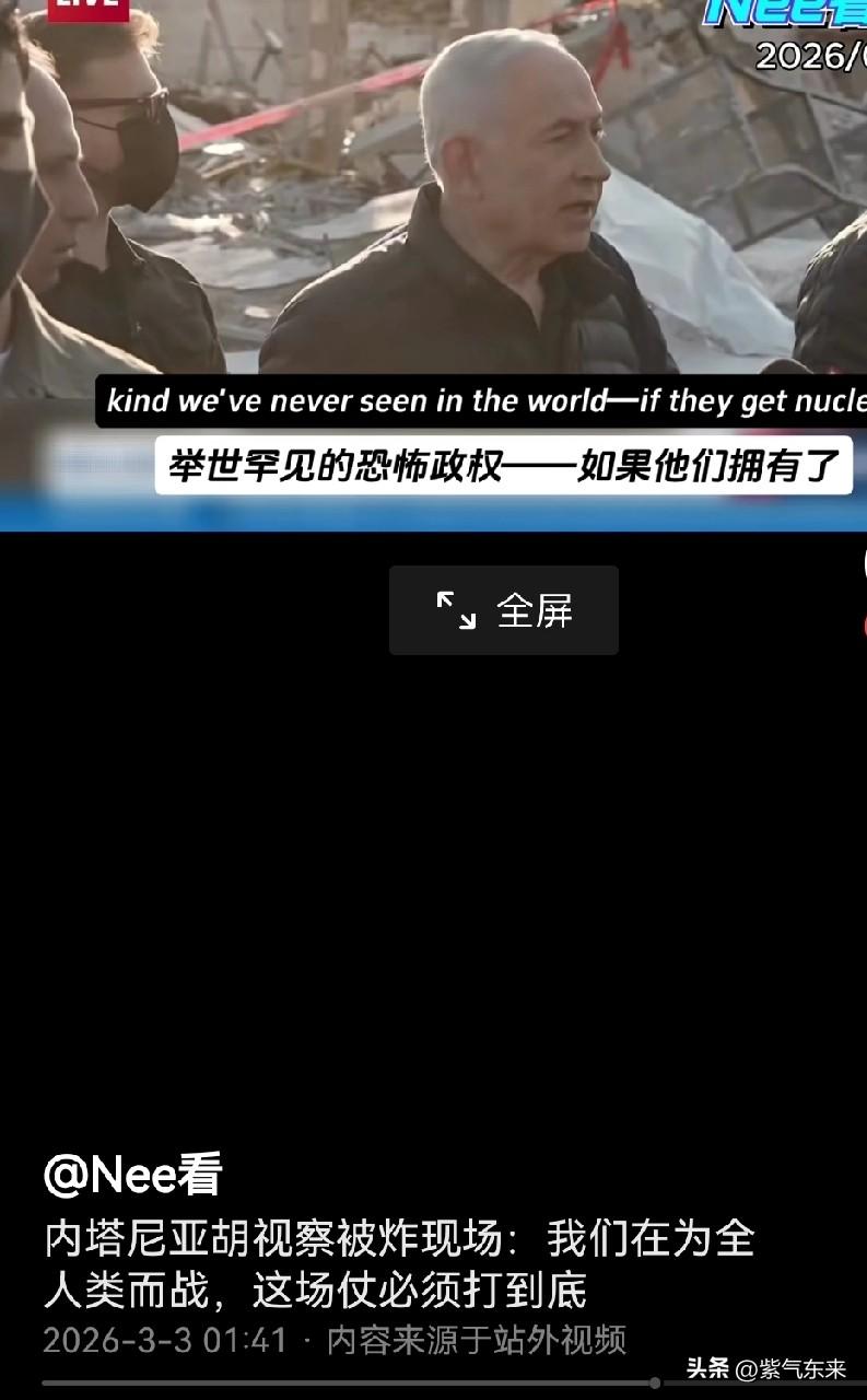 伊朗一个主权国家,就是因为自保发展核计划 结果以色列就如坐针毡,欲除之而后快 把伊朗政权定义为恐怖组织,其用心就是为了以色列一己私利罢了! 颠覆伊朗政权,以色列就是真真切切的“打遍中东无敌手了”。 以色列总理内塔尼亚胡给自己带高帽子称:拯救了全人类。 真是让人哭笑不得! 内塔尼亚胡在以色列被炸的废墟上接受媒体采访,大放厥词 内容大概如下:以色列正在被德黑兰恐怖组织袭击,这是一个罕见的恐怖政权,非常感谢伟大领袖唐纳德·特朗普的加入,和我们一起拯救全人类! 听完以后我只能说,这就是欲加之罪何患无辞! 伊朗挺住!你是中东最后一份倔强了!以色列总理