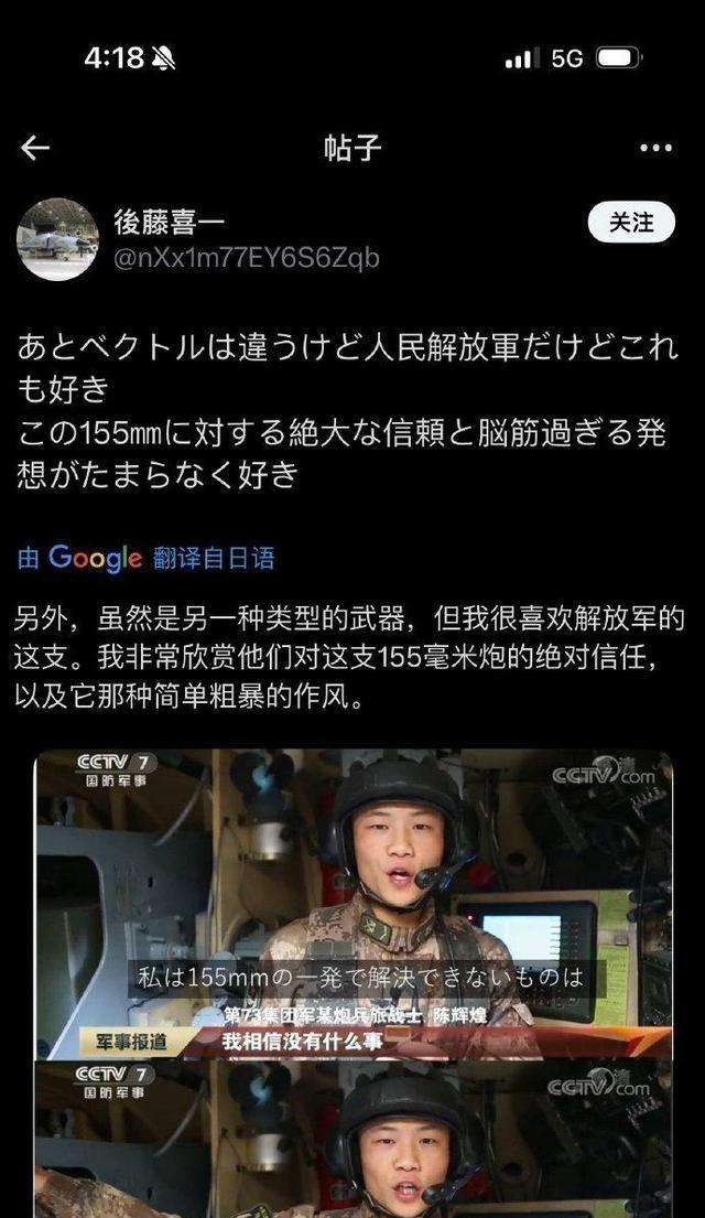 解放军战士在日本推圈爆火,原因竟然是因为一句话! 这位战士面对镜头,没念稿子,也没喊口号,就是用一种特别平常的语气说了一句:“我相信没有什么事情是一发155毫米炮弹解决不了的,如果有,那就再来一发。” 解放军战士说出这句话时,背景是部队日常训练报道,配上国产155毫米自行火炮实射画面。视频传到日本后,迅速在军事爱好者圈子扩散。网友们一看就知道,这不是空话。155毫米口径在国际上已经是主流重型榴弹炮标准,射程几十公里,增程弹能超百公里,爆炸覆盖广,破片杀伤强。日自卫队自己也装备类似火炮,对这种火力分量门清。战士用最平实的语气说出来,反而显得特别有说服力。 过去几年,日本X上对中国军事话题的兴趣一直在涨。不少年轻人研究PLZ-05式自行火炮性能,cos解放军装备,甚至讨论国产火炮的技术参数。这句直白表达正好戳中了点:不绕弯子,不玩虚的,就用实力说话。日本网友骨子里有慕强的一面,喜欢看有底气还不张扬的东西。欧美军事宣传往往包装得很华丽,中国这边却直接亮出“计量单位”,一发不行再来一发,这种务实态度让他们觉得新鲜又有力量。 这句话本身没针对谁,没挑衅意味,就是战士日常训练后的真实感受。解放军这些年装备更新快,155毫米火炮从射程到精度都达到国际先进水平。历史上抗美援朝时志愿军用缴获的155毫米榴弹炮就打出过威风,现在国产型号性能更强,战士说出这话有实打实的依据。网友们讨论时,也多是认可这种自信,而不是往对抗方向引。 视频先在国内平台发,播放量一般。后来有人剪辑那段话,加日文字幕发到日本X,起初几个账号转发,很快就扩散。评论区有人贴火炮数据,有人说这比官方口号更打动人。热度没到全民级别,但在军事圈持续发酵,国内网友看到后也转回来,形成小互动。这事证明,真实的东西传播力有时超乎想象,不需要包装也能出圈。 战士本人没受太大影响,继续在炮兵部队服役,参加后续实弹演训和机动任务。部队生活照旧,拉炮、装填、射击考核,一步步来。事件过去后,网上讨论渐渐平息,但那句话留下的印象还在。不少人觉得,这反映出解放军官兵的底气来源:不是喊出来的,是练出来的,用装备和实力撑起来的。 一句话火到国外,归根结底是因为它接地气。战士没想出名,就随口说了训练体会,却意外让更多人看到中国军人的真实一面。日本网友放下些偏见,认可这份不装腔作势的自信。国内大家也乐见其成,觉得自家战士牛就牛在实干上。