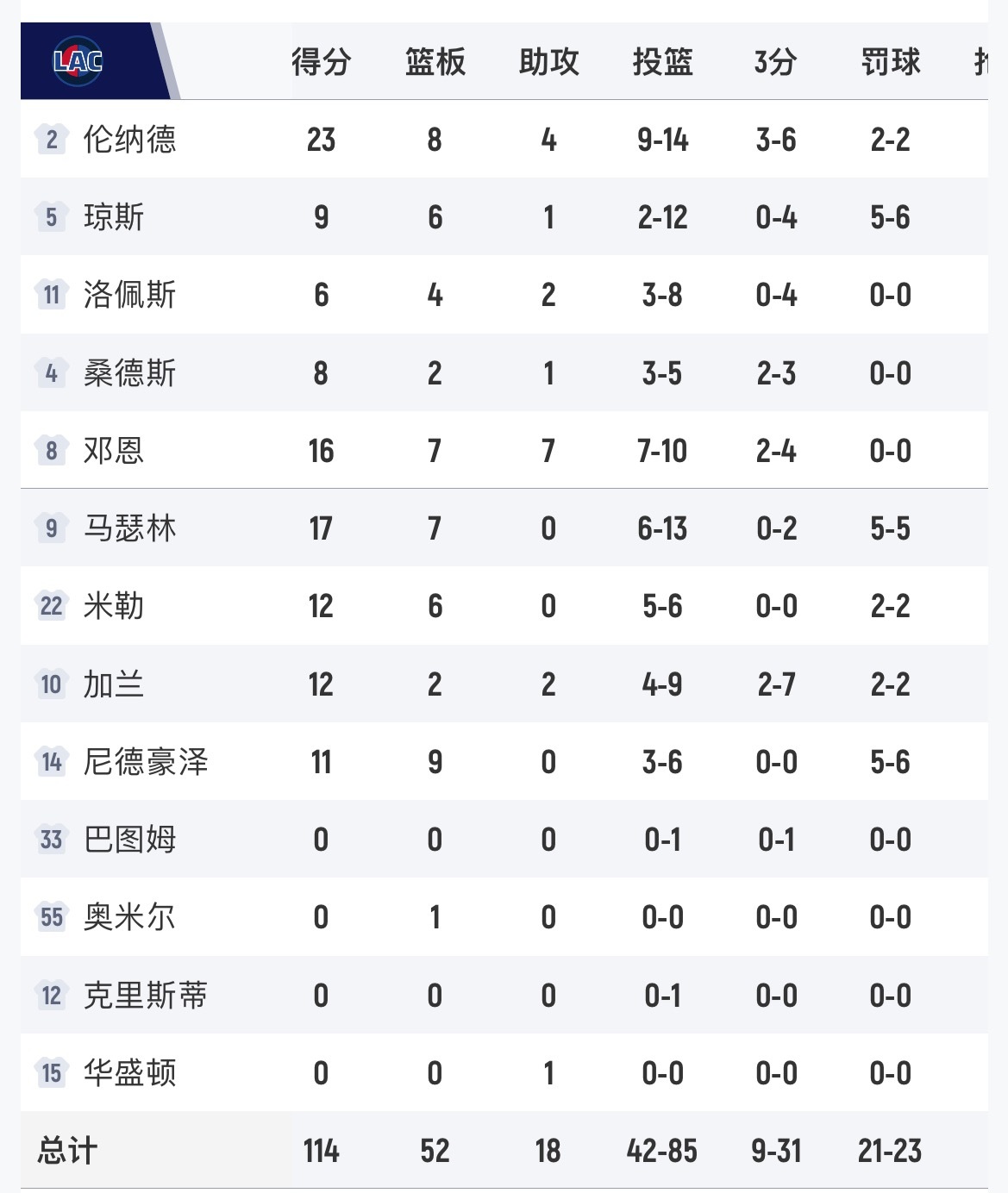 勇士被快船17分逆转了,主场101-114。波杰22分7板3助、威廉姆斯18分2板2助、霍福德17分6板;伦纳德23分8板4助2断、马瑟林17分7板、邓恩16分7板7助2断。快船vs勇士
