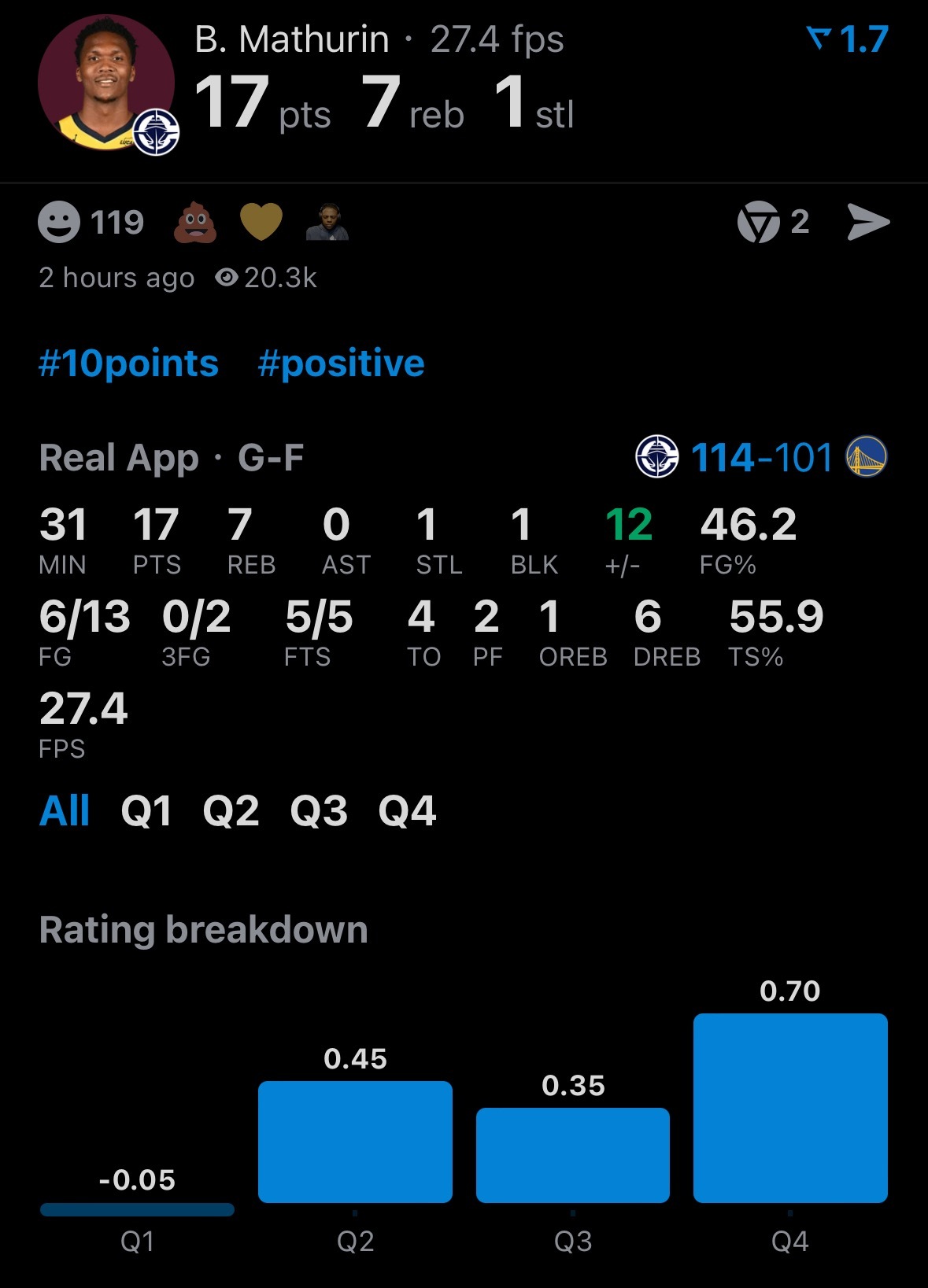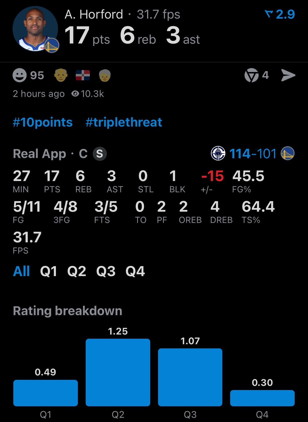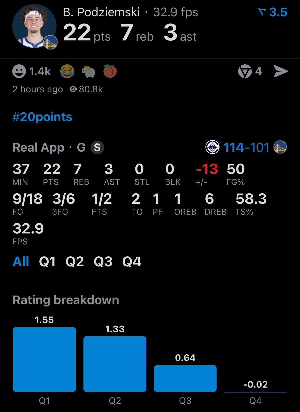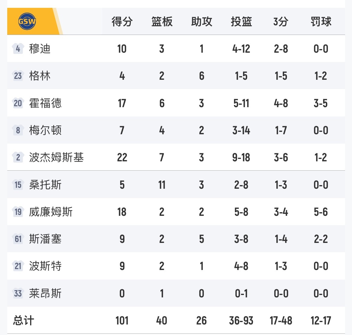 勇士被快船17分逆转了,主场101-114。波杰22分7板3助、威廉姆斯18分2