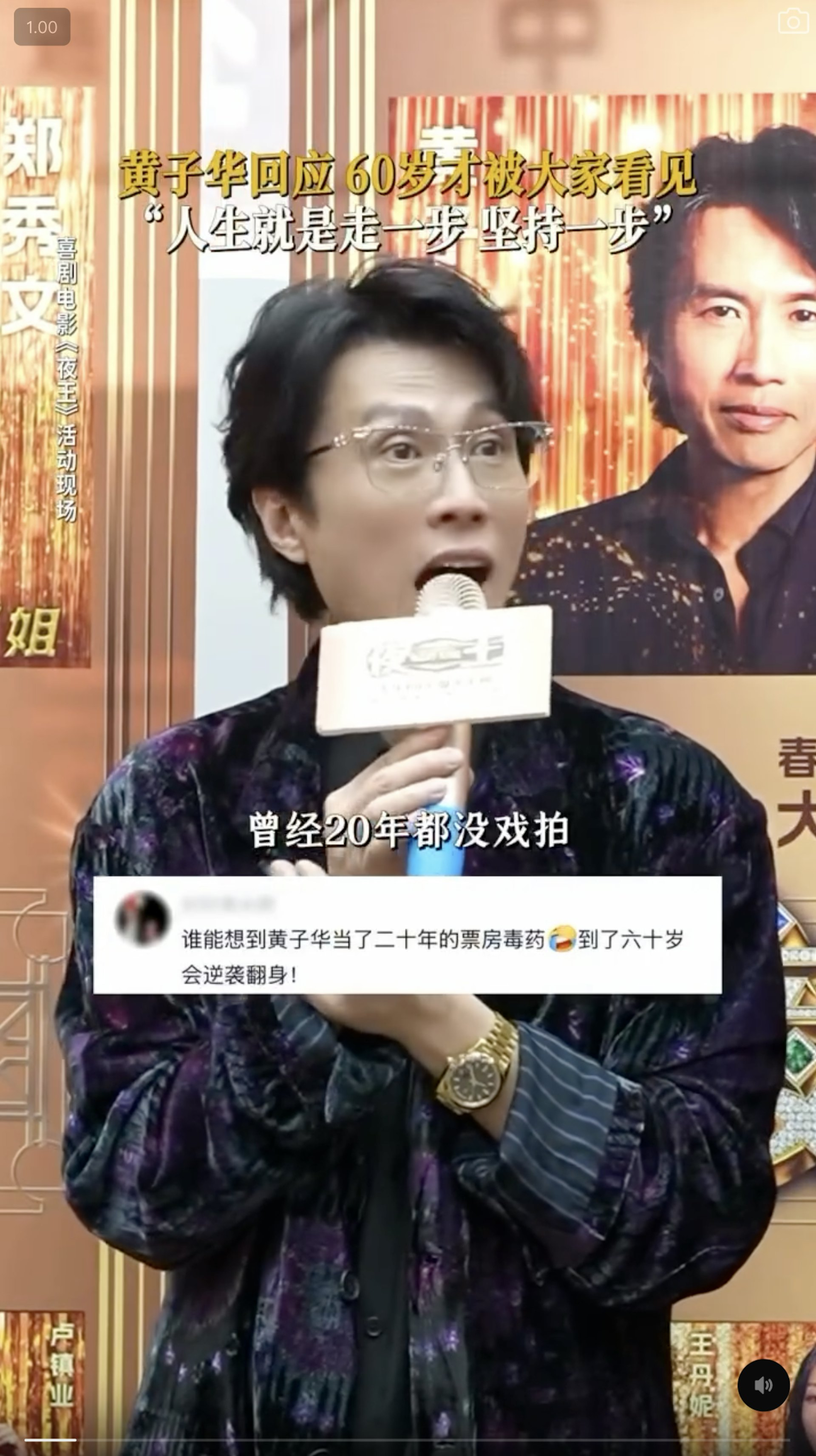 【黄子华票房毒药变灵药】黄子华说破地狱破了自己人生的地狱黄子华近年成为“票房灵药”,在电影业市道低迷情况下,主演的《毒舌律师》、《破.地狱》两部票房过亿的电影,至今仍是香港历年来票房第一及第二位的港产片。而今年他主演的贺岁片《夜王》,目前港澳票房已冲破7000万,成为史上港产片票房第7位。不过,不知还有多少人记得,黄子华以往曾有很长时间都是“票房毒药”。最近,在电影路演现场,他回顾了那些年的经历:“曾经20年都没戏拍,当年自己都放弃演戏了,直到《破.地狱》破了我人生的地狱。”那一年,黄子华64岁,入行第40年。“人生有时候真的不用看太远,走一步看一步,走着走着,就会又看见一片蓝天出现。”