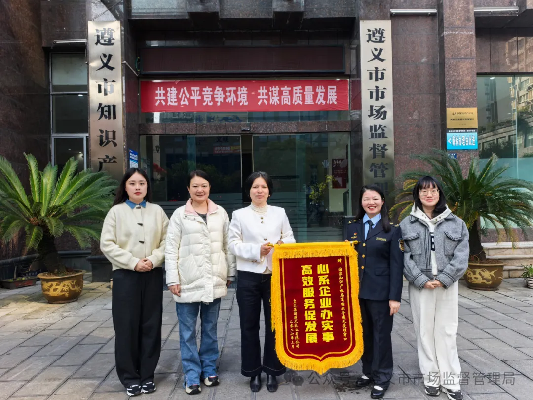 国家知识产权局商标业务遵义受理窗口两位同志秉持专业、高效的服务理念,在为企业办理商标质押登记手续的过程中,细心指导企业准备申请材料,认真进行审核把关,确保了手续材料的准确性和完整性。通过把握关键环节,积极与上级协调,最终帮助企业高效办理了商标质押登记手续,解决了资金难题。皇氏集团遵义乳业有限公司专程向商标业务遵义受理窗口赠送锦旗,感谢“心系企业办实事,高效服务促发展”。