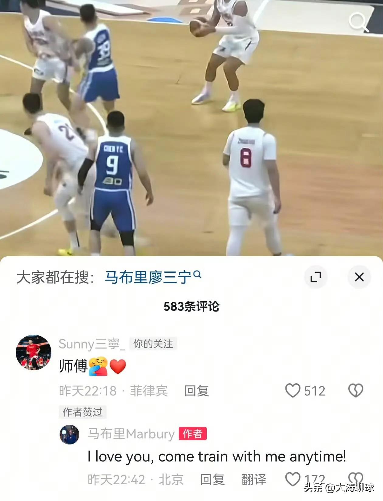 廖三宁、贺希宁表白马布里!中国男篮在100:93拿下中华台北后,绿卡球员马布里社媒发布中国男篮视频,贺希宁和廖三宁在视频下面留言评论“师傅”!马布里随后回复并给予鼓励! 贺希宁新秀时期在被租借至北控男篮,与马布里同为队友,马布里多次传授贺希宁实战技巧,比如后撤步跳投、对抗终结等关键球技术,并亲手将3号球衣交给贺希宁,公开表示贺希宁“有能力成为球队领袖”! 与廖三宁的关系则是真正的师傅!作为廖三宁的伯乐和导师。在进入CBA初期便师从马布里,受到其重点培养和指导,技术风格和比赛意识深受影响。马布里曾公开称赞廖三宁为“真正的勇士”!