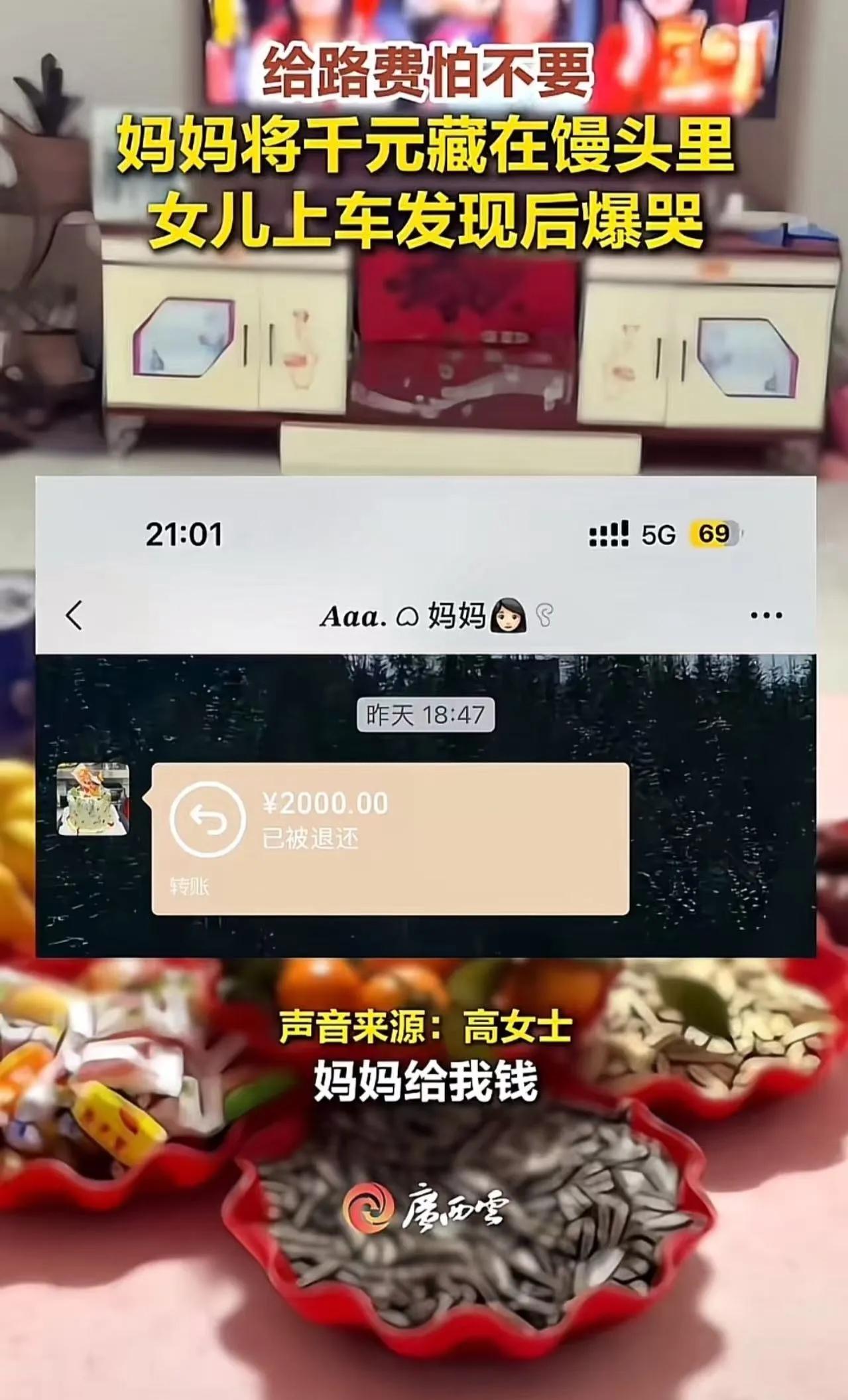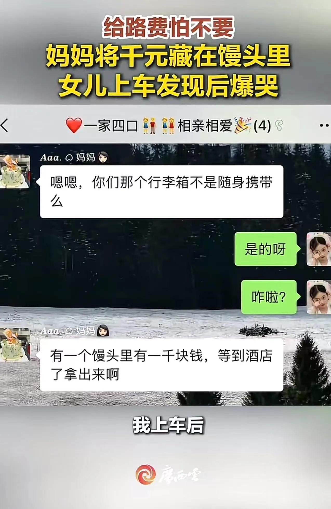“闺女,妈把1000块钱塞在馒头里了,你路上记得拿出来……” 火车刚开出站,小莉收到这条微信,手一抖,眼泪唰地就下来了。 她慌忙翻开背包,掏出母亲临出门前塞给她的那几个大馒头。掰开第一个,没有;第二个,也没有;掰到第三个最饱满的——一张红色的百元大钞,静静地躺在雪白的馒头芯里。 那一瞬间,小莉在车厢里哭得像个孩子。 事情还得从过完春节那天说起。小莉又要从辽宁老家出发,飞往2000公里外的西安继续工作。临出门前,母亲从厨房端出刚蒸好的馒头,对她说:“拿着,路上饿了吃。” 小莉心头一酸,接过沉甸甸的布包,点了点头。她知道,这是母亲表达不舍的方式。从小到大,无论她去哪儿,母亲的行李里总会塞满吃的。 前一天晚上,母亲给她转了2000块钱当路费。小莉一看,直接拒收了。父亲是普通工人,母亲打零工,家里条件并不宽裕。小莉心疼父母,死活不肯要这笔钱:“我都工作了,怎么能还要你们的血汗钱?我自己能挣。” 母亲急了,拉着她的手说:“你在外头花销大,别委屈了自己。我们不吃不喝也能省下来,你拿着,妈心里踏实。” 可小莉态度坚决,愣是没拿那2000块现金。她以为自己赢了这场“拉锯战”,却没想到,母亲早就留了后手。 上车后,她收到那条消息,手忙脚乱地翻出馒头。钱被叠得整整齐齐,紧紧地嵌在面团里,显然是母亲揉面的时候,一点一点塞进去的。 小莉后来接受采访时说:“爸爸妈妈对我的爱,从来不吝啬。”她想起母亲凌晨四点就起来和面、发面、揉面,想起母亲把馒头递给她时那欲言又止的眼神,想起母亲反复叮嘱“路上饿了吃”时那沙哑的声音。 原来,母亲早就想好了这一招。她知道女儿倔强,不肯收钱,便用这种最笨拙、最深情的方式,把爱藏进了馒头里。 这个故事传到网上,无数网友泪目了。有人说:“看到这个馒头,我破防了。我爸妈也是,每次我回城,都要偷偷往我包里塞钱。他们总觉得自己给得不够多。”还有人说:“父母的爱,总是带着泥土的芬芳和食物的温度。他们不懂什么浪漫的仪式,只知道把最好的、最实在的,塞进你的手里、你的包里、你的心里。” 其实从法律角度讲,这笔钱有个专业的说法——赠与。民法典规定,赠与是赠与人把自己的财产无偿送给受赠人,受赠人也愿意接受。小莉母亲把钱塞进馒头里,小莉收下并食用,这就在法律上完成了赠与。但说实话,谁会在意法律怎么定义呢?这1000块钱,哪里只是钱?那是母亲说不出口的牵挂,是父亲沉默寡言的惦记,是他们省吃俭用也要留给孩子的底气。 父母的爱,是这世上最“笨拙”的爱。他们不会说“我爱你”,只会把爱揉进面团里,缝进衣服里,藏进你每一次离家的行囊里。他们用最土的办法,为你铺就最坚实的路;用最笨的手段,为你抵挡世间的风霜。 最后问一句:你有没有被父母这样“偷偷”爱过?评论区说说你的故事——你离家时,爸妈往你包里塞过啥?是土特产,是零花钱,还是那句永远说不出口的“别走了”? (来源:综合自网络新闻)