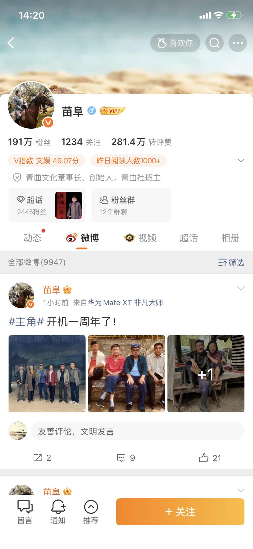 【著名相声演员苗阜晒图庆祝参演影视,相声演员跨界成为常态,你怎么看】 近日,著名相声演员、一级演员、陕派相声代表人物、陕西曲协主席、博士、大学教授、博士生导师、艺术总监、艺术委员会主任、曲艺团团长、青曲社董事长苗阜在微博上晒出自己参加影视作品主角开机一周年的照片,并且还晒出和主创的合照,由此引发的关注!据了解,这是苗阜大师时隔多年再次参加影视作品的机会,也是一次具有大IP的影视作品,通过照片能够看出苗阜在影视中的主角身份,同时也能够看出现在的相声演员跨界已经成为一种常态,背后更多反映的是说相声已然无法满足收入需求和对艺术追求的层级!对此,你怎么看? 其实,自从郭德纲大红大紫以后,郭德纲也是走上了影视的道路,冯巩、曹云金、杨议、岳云鹏、孟鹤堂、郭麒麟等人也是如此!如今,苗阜也是尝试这样的经历,亦步亦趋的跟随着郭德纲走过的道路在前行,一种尝试,一种勇气,也是一种值得肯定的事情!苗阜作为陕派相声的先驱,在地域相声中处于瓶颈阶段,如此从一个全新的角度去打开局面也是可以理解的!