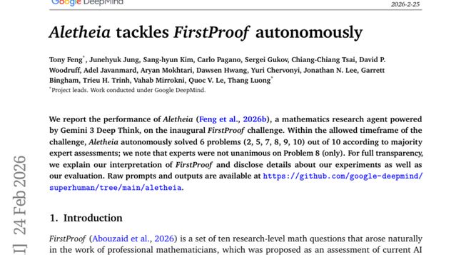 数学一直被认为是人类智慧的高峰,那些深奥的数学证明和复杂的计算似乎只有训练有素的数学家才能掌握。然而,GoogleDeepMind的最新研究成果正在改写这个认知。这项发表于2026年2月25日的研究论文(arXiv:2602.21201v1)展示了一个名为Aletheia的数学研究机器人,它在首届FirstProof挑战赛中展现出了惊人的数学推理能力,成功自主解决了10道研究级数学题中的6道。