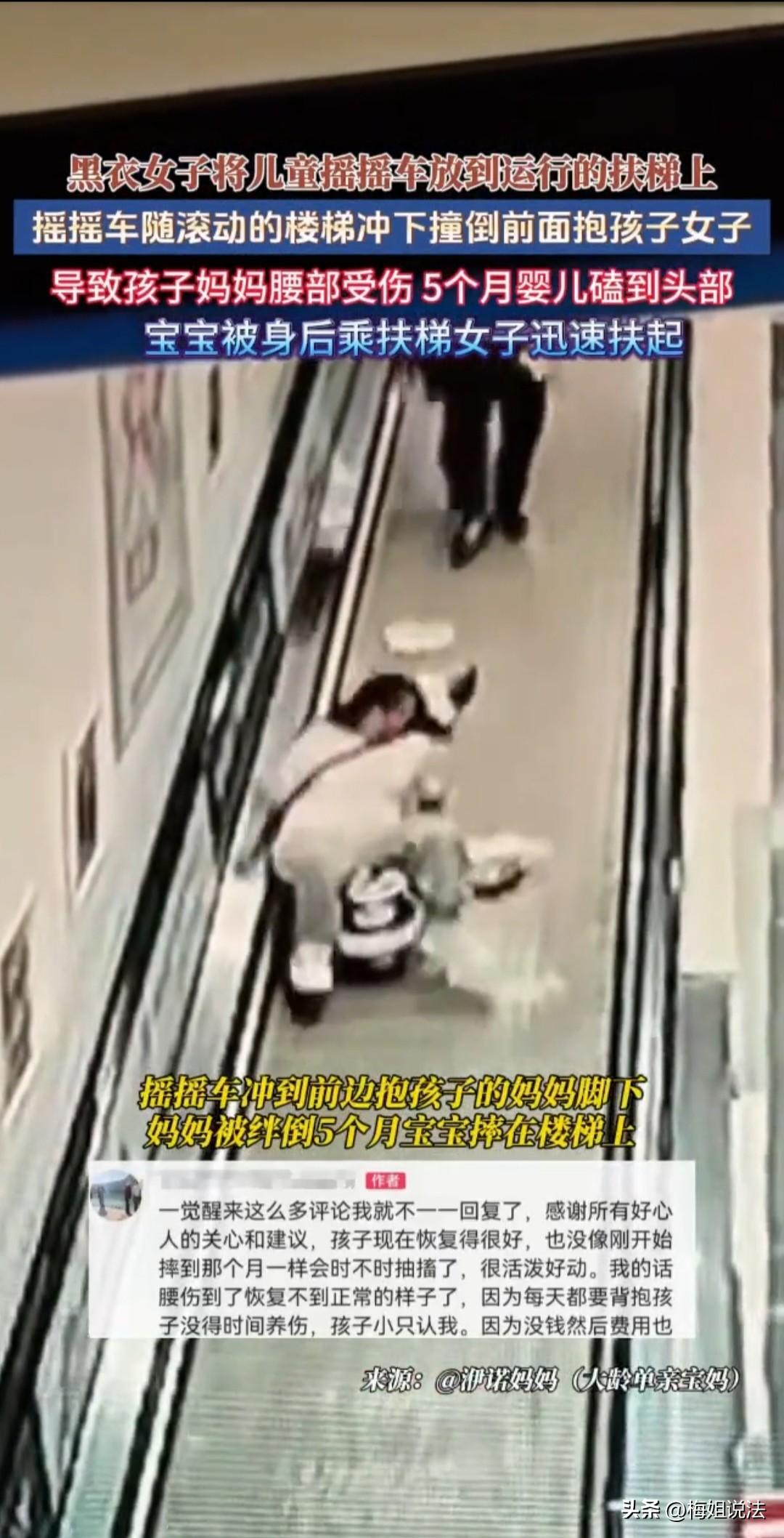 一位宝妈抱着才5个多月大的宝宝逛商场,坐扶梯下楼的时候,突然被身后滑下来的玩具车撞了个正着。她抱着宝宝重心不稳,直接仰倒在扶梯上,怀里的宝宝也摔了出去,把头磕得到处都是伤。更让她崩溃的是,那个放玩具车的人,明明眼睁睁看着车滑下来,却连一句提醒的话都没说。 当天,宝妈带着宝宝去商场买东西,逛完准备坐扶梯下楼。 宝宝才5个多月,还坐不稳,她就一直小心翼翼地横抱着,一手护着宝宝的头,一手抓着扶梯扶手,生怕出一点岔子。 扶梯上的人不算多,宝妈站在中间,身后不远处有个女的,还拉着个小孩,手里拎着一辆玩具车。 宝妈一开始没在意,可刚上扶梯没走几步,就感觉身后有东西“嗖”地一下滑过来。 还没等她反应过来,那辆玩具车就“咚”地一下撞在了她后腿上。抱着宝宝本来就站不稳,这一撞直接让她失去了平衡,整个人向后仰倒在扶梯上。 她拼尽全力想护住宝宝,可扶梯还在走,宝宝就从她的怀里滑了出来,额头和后脑勺重重磕在扶梯上,当场就撕心裂肺地哭了起来。 宝妈自己也摔得浑身疼,可顾不上这些,只想赶紧抱宝宝。还好身后的路人反应快,立刻按了扶梯的紧急停止按钮,冲上来把宝宝抱起来,又把她扶稳。 宝妈接过宝宝,一看孩子额头肿起了大包,后脑勺还有擦伤,哭得快喘不上气,自己也吓得浑身发抖,眼泪止不住地流。 她转头看向那个放玩具车的女人,本以为对方会赶紧道歉、问问孩子怎么样,结果那人就站在原地,一脸无所谓,好像这事跟她一点关系都没有。 宝妈又气又急,质问她为啥把玩具车放扶梯上,看到车滑下来为啥不提醒。 那女的支支吾吾,只说自己“没拿稳”,对没提醒的事一句解释都没有,态度特别冷淡。 周围人都看不下去了,纷纷帮宝妈指责她:“扶梯上能随便放东西吗?看到车滑下来不喊一声,也太不负责任了!”随后,宝妈赶紧报了警,抱着宝宝去了医院。 医生检查后说,宝宝头部多处软组织挫伤,还有轻微脑震荡,得住院观察几天。看着宝宝头上的伤,听着孩子时不时的哭闹,宝妈心疼得整宿睡不着觉。 她怎么也想不通,一个小小的玩具车,怎么就把宝宝伤成这样,而那个女人的冷漠,更让她寒心。 现在这事已经交给法院处理了,宝妈也提出了赔偿要求,包括宝宝的医药费、护理费,还有自己的精神损失费,就等法院判决了。 那这事在法律上怎么说呢? 按《民法典》1165条的规定,行为人因为自己的过错,给别人造成了损害,就得承担侵权责任。 那个女的在扶梯上随手放玩具车,本身就违反了商场的安全规定,明显是她的错。她看到车滑下来却不提醒,眼睁睁看着宝妈和宝宝受伤,这就是故意放任危险发生,肯定要承担民事赔偿责任。 具体来说,她得赔宝宝的医药费、住院费、营养费,还有宝妈因为照顾宝宝耽误工作的误工费。如果宝宝的伤最后鉴定成伤残,她还得赔残疾赔偿金和精神损害抚慰金。 另外,商场也有责任。《民法典》第1198条说了,商场这种公共场所的管理者,要是没尽到安全保障义务,比如扶梯口没贴“禁止放置物品”的警示,也没工作人员提醒,那商场也要承担相应的补充责任。 这事也给所有人提了个醒:在公共场所,一定要看管好自己的东西,尤其是扶梯、电梯这种地方,千万别随手放东西,万一滑下来伤到人,后悔都来不及。 看到别人有危险,也别冷漠旁观,喊一声提醒一下,可能就能避免一场意外。 你觉得这事全是那个女人的责任吗?商场是不是也该担点责?评论区说说你的看法。