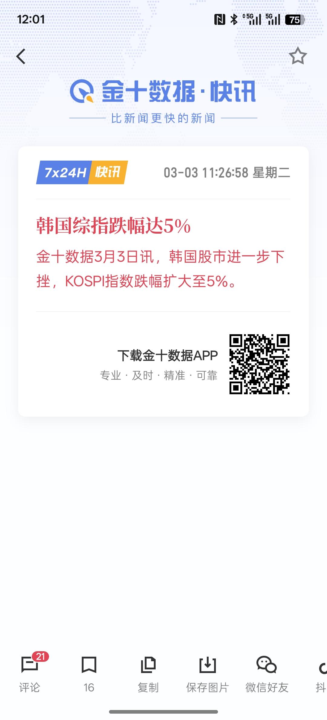 中东冲突阴云未散 日韩股市大幅收跌,今天,韩国股市大幅下跌,盘中跌幅达到5%,已经触发熔断机制!整个亚洲市场的走势基本上都是下跌趋势!A股市场同样今天盘中跌幅相对比较大,很多个股类的上市公司股价都跌幅3%到5%左右!整体来看市场的情绪,还是有一些波动,今天整个A股市场跌幅的上市类公司相对还是比较多!那么还要看后续市场的情绪修复!明天市场情绪应该有一个修复的行情走势!目前的黄金白银价格开始走弱,证明市场的情绪并不是看跌资本市场!中东战争持续的时间可能相对不会很长! 昨晚,整个欧洲市场的股市也是下跌趋势!那还要看后续中东战争的发展方向会不会外溢延伸!