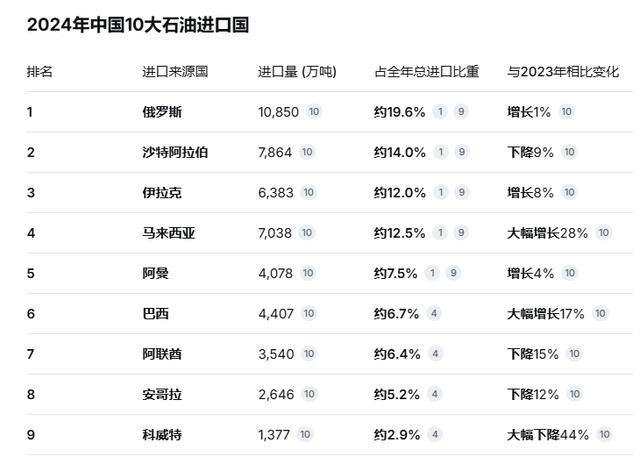 美以开始轰炸伊朗:如果伊朗再倒下了,中国每年进口超5亿吨石油,中国的石油安全能保障吗? 2025年中国原油进口总量达到5.78亿吨,石油消费量7.62亿吨,对外依存度约76%。这意味着消费的石油大部分靠进口。海关数据显示,当年前十大供应国是俄罗斯、沙特阿拉伯、伊拉克、马来西亚、巴西、阿联酋、阿曼、安哥拉、科威特和美国,加起来占进口八成多。 伊朗和委内瑞拉因为制裁没上榜,但通过转口渠道实际供应不少,伊朗部分年均约1.38百万桶/日,占中国海运进口13%左右,主要给山东独立炼厂加工,价格有优势,补充了国内缺口。 2026年1月3日美国特种部队在加拉加斯行动,抓走委内瑞拉总统马杜罗。之后美国石油公司进入当地修复设施,控制出口,明确减少对华供应。这让中国从南美拿油的路子收窄。 2月28日美以发动联合打击,以色列战机先清外围,美国军机和导弹跟进,目标包括伊朗领导层和军事设施。袭击确认哈梅内伊身亡,多名高层同时遇难。如果伊朗政权转向亲美,新政府很可能配合美国限制原油出口,中国这部分补充渠道就没了。 国际石油市场短期会紧张,布伦特原油价格一度升到每桶72美元附近。中国进口成本增加,炼厂得花更多钱找替代货源。 但中国早就把进口渠道铺得很散。俄罗斯通过管道和海运稳稳供应,占总进口近20%,不受霍尔木兹海峡影响。中东其他国家如沙特有红海备选路线,伊拉克、阿联酋等也保持稳定。巴西、安哥拉、阿曼这些拉美和非洲来源提供额外缓冲,过去几年这些渠道不断扩大。 国内这几年大力推绿色能源,特别是新能源汽车。2025年销量超过1600万辆,渗透率接近50%,道路运输的汽油柴油用量明显降下来。 成品油需求增速控制在1%左右。国家石油储备体系在价格波动时放库存,缓冲了冲击。港口那边,俄罗斯远东油轮按时到,原油直接进管道去东北和华北炼厂。南方码头同时接中东和非洲货,储罐区调度员盯着数据调配。这些环节连起来,让供应更有韧性。 伊朗那边马上反击,向海湾美军基地和以色列目标发射导弹和无人机。波斯湾多个地方传来爆炸,巴林港口附近船只受损起火,消防船赶去处理。 美军基地启动防空拦截,地面人员疏散。局势进入对峙,美国继续施压要求伊朗权力过渡,新领导层在商量重组,石油出口政策可能调整。委内瑞拉马杜罗已被押到美国,美国石油公司在那边重启钻井,原油按新方向走。 中国港口还是正常忙碌,油轮靠岸卸货,管道输送不停。新能源汽车工厂流水线24小时转,电池和电机部件组装下线,降低了整体石油需求。国际油价短期涨带来额外支出,但多元化布局和能源转型让影响控制住了。国家继续建储备设施,扩大进口选项,确保能源通道顺畅。 说到底,中国石油安全不是靠一个两个国家,而是靠整体布局。俄罗斯管道油稳定,中东非洲拉美多点开花,国内减油增电同步推进。 这些年积累的库存也顶得上短期波动。伊朗渠道受影响是现实,但不会动摇根本。就像过去几年制裁环境下,中国照样从伊朗拿油,通过第三方转口,炼厂适应了折扣货源。现在调整采购,增加俄罗斯和巴西量,就能补上缺口。