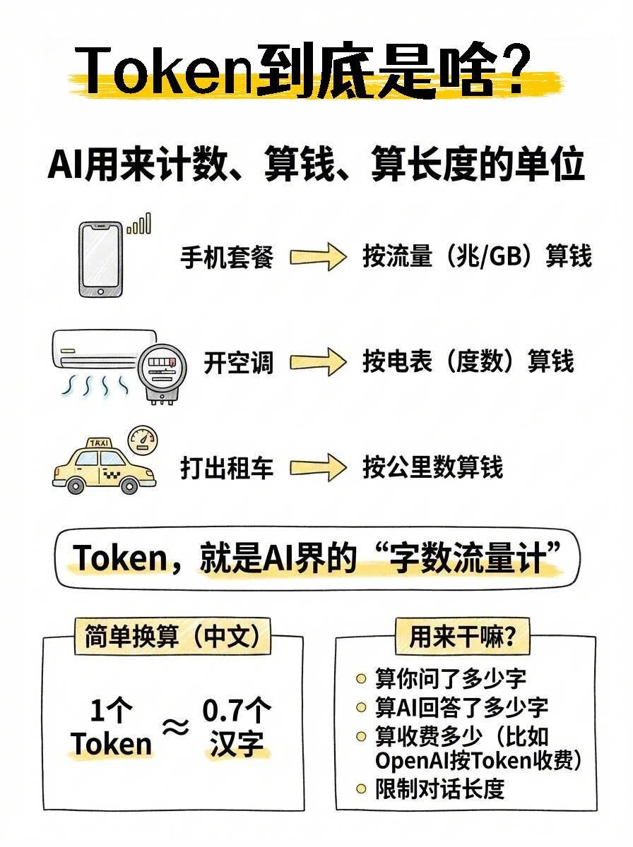 这个过程就叫Token化。经过这样处理,复杂的文本就变成了一堆AI可以理解和处理的小积木。1个token=1-2个汉字=0.75个英文单词
