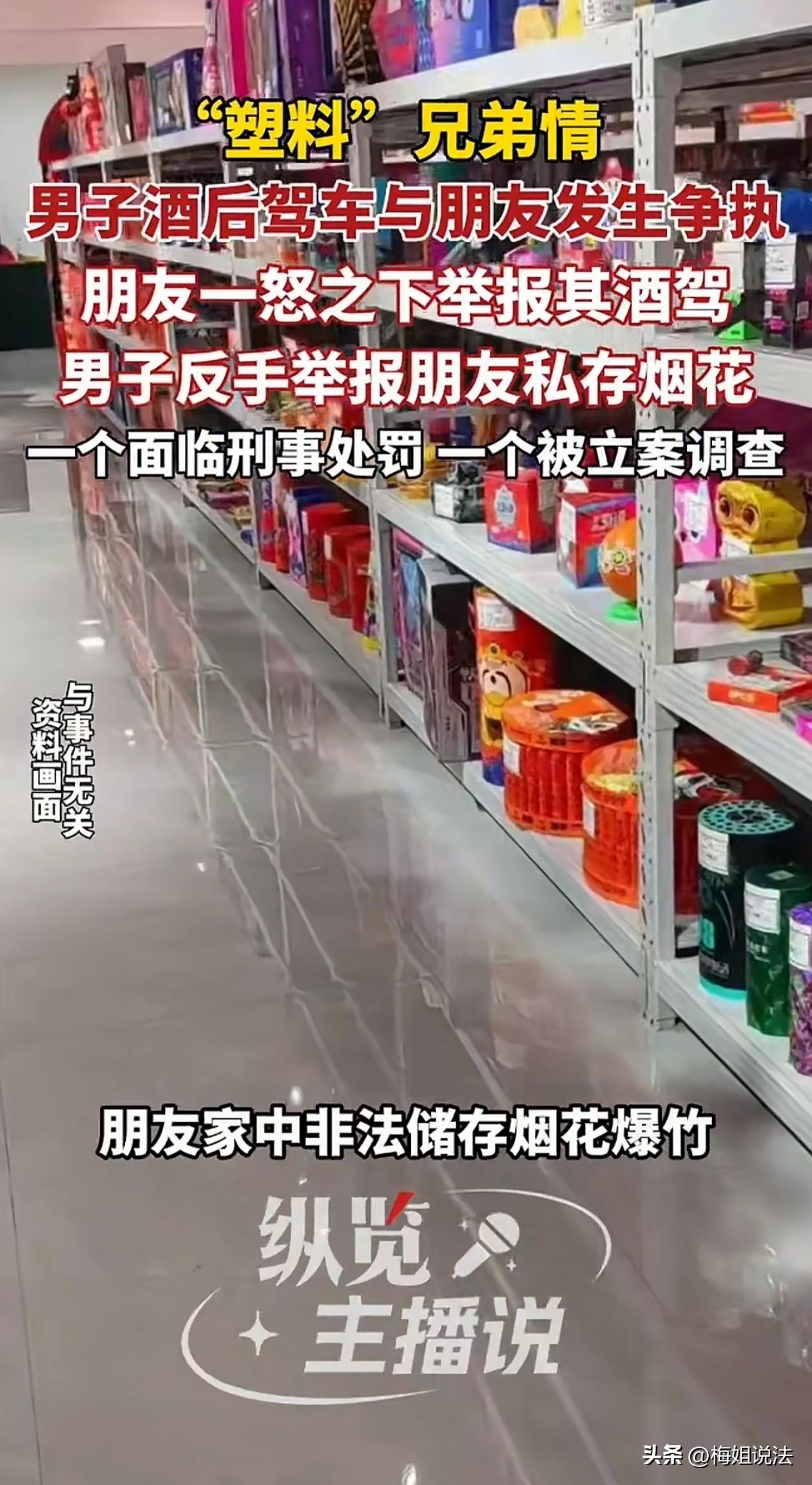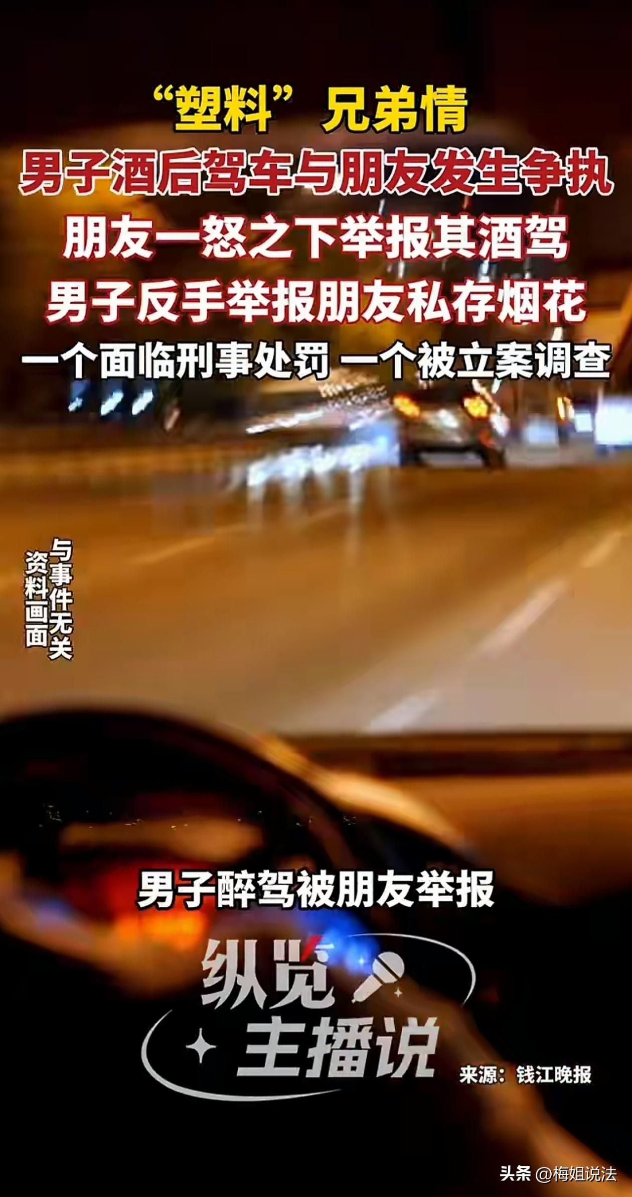 昔日好兄弟一夜变仇敌?安徽亳州,一男子喝酒后到朋友家中做客,竟不料遭朋友举报其酒驾。男子一怒之下,便“回礼”举报朋友在家中非法储存烟花爆竹。一个酒驾一个藏炮,最后双双落网!网友直呼:这哪是兄弟,这简直是“卧龙凤雏”啊! 据悉,亳州男子曹某在家中喝醉酒后,无心睡觉,又得知好兄弟“怀民亦未寝”,甚是想念啊! 思来想去,必须要到朋友家里叙叙旧,看天看云看星星,都不如与你坐下来唠到天昏地暗! 于是,曹某也是性情了,就算喝醉了也要到朋友家里。其实喝酒后去朋友家里没有错,但错在喝酒后开车去朋友家里,这性质就变了,酒驾就是无视法律! 曹某就这样完全不顾及自己是生活在法治社会,酒后驾车是万万不允许的!也许是酒壮怂人胆,又或许是心怀侥幸,曹某开着自己的小汽车,一脚油门就奔着朋友家里去了,声称“谈事”。 这不管是谈事也好,叙旧也罢,酒后驾车就是不对,这简直是揣着个移动炸弹满街跑,真要是出事可就晚了! 曹某到达朋友家后,这两人就开始“秉烛夜谈”。 这一开始气氛还挺融洽的,但这聊着聊着就不对劲了,氛围是越聊越紧张,越聊越激动。从开始的叙旧,变成了争论,最后直接升级成了争吵。 这没喝酒的倒是率先情绪失控,气昏了头,直接就举报朋友曹某酒后驾车,显然这事情是“谈崩”了。这波操作,直接把矛盾从民事纠纷干到了刑事侦查。 民警接到举报电话后,火速赶到现场,来平息这场闹剧。面对民警的质问,曹某承认了自己是在家中喝完酒后开车过来的。 但是曹某不甘就这样让朋友“对不起”自己,反手就向警察举报朋友在家中非法储存烟花,曹某表示这算“回敬”了。 “我俩只是吵架了,本没啥事,但他报警举报我了。既然他对不起我,那我也要对不起他。” 这一记回马枪,杀得朋友措不及防,民警一听,这事儿可不能马虎,烟花爆竹可不是闹着玩的,必须立刻展开搜查! 果不其然,根据曹某提供的线索,民警在其朋友家中搜查到了一批非法储存的烟花爆竹。这下好了友谊的小船说翻就翻,翻完还得互相踩两脚。 随后,经权威机构鉴定,曹某的血液酒精含量高达188.5mg/100ml,远远超过了醉驾标准,这已经涉嫌危险驾驶罪。 最后,曹某被依法吊销驾驶证,并面临刑事处罚,而朋友也因为非法储存危险物质被立案调查。 在这里提醒大家,千万不要像曹某一样酒后开车!酒后开车处罚的情形分两种:酒驾和醉驾。那么如何判定呢? 一、饮酒驾驶:车辆驾驶人员血液中的酒精含量大于或者等于20mg/100ml,小于80mg/100ml。 二、醉酒驾驶:车辆驾驶人员血液中的酒精含量大于或者等于80mg/100ml。 酒后驾车是一种违法行为,会面临严厉的处罚,包括但不限于以下几种情况: 饮酒驾驶:暂扣6个月驾驶证,并处1000元以上2000元以下罚款。 因饮酒后驾驶机动车被处罚,再次饮酒后驾驶机动车的,处10日以下拘留,并处1000元以上2000元以下罚款,吊销驾驶证。 醉酒驾驶:由公安机关约束至酒醒,吊销驾驶证,依法追究刑事责任,5年内不得重新取得驾驶证。 醉酒驾驶营运车辆,由公安机关约束至酒醒,吊销驾驶证,依法追究刑事责任,10年内不得重新取得驾驶证,重新取得驾驶证后,不得驾驶营运车辆。 酒后或醉酒驾驶发生重大交通事故:构成犯罪的,依法追究刑事责任,吊销驾驶证,终生不得重新取得驾驶证。 另外,非法储存烟花爆竹也是法律所不容的,其具体的处罚标准会根据违法行为的情节轻重、储存数量、是否造成实际危害等因素综合判定。 例如,轻微的非法储存行为可能仅受到治安拘留处罚,而情节严重、涉及大量烟花爆竹或引发安全事故的,可能面临刑事处罚。 曹某和他的朋友,算是用实际行动诠释了什么叫“互相成就”,因为一场争吵,双双把自己送上了违法犯罪的“光荣榜”。 所以说,喝酒别开车,家里别藏雷,做人留一线,日后好相见,不然就是下一个“卧龙凤雏”了! 对于上述事件,您有什么看法?欢迎留言交流。 来源:钱江晚报 纵览新闻