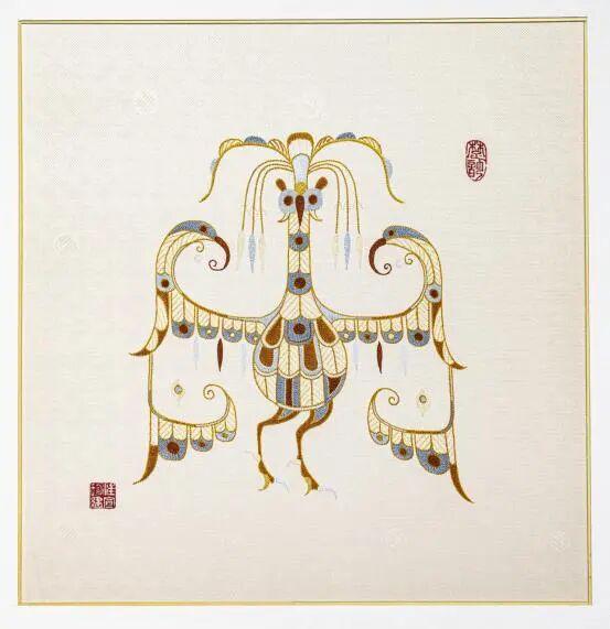 由省级非遗项目荆州民间刺绣《三首凤》以千年匠心映上元灯火。作品复刻楚式图腾精髓,凤鸟三头并峙、双翼舒展,承继楚文化中凤为祥瑞的精神内核。绣线以暖金、朱红为主调,缀以青蓝,针脚细密如元宵灯火交织,背景暗纹绵亘,尽显楚绣“五彩彰施”的美学底蕴。