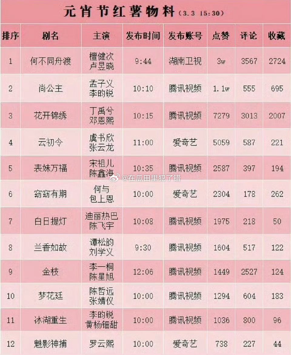 元宵节抖🍠物料热度:檀健次卢昱晓何不同舟渡和孟子义李昀锐尚公主热度都不错