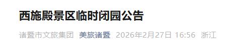 闭园时间:2026年3月5日(全天),闭园期间景区将停止一切旅游接待服务,不对外开放。