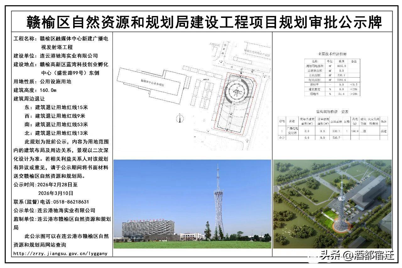 连云港市赣榆区新地标,160米新广播电视塔规划审批公示!
