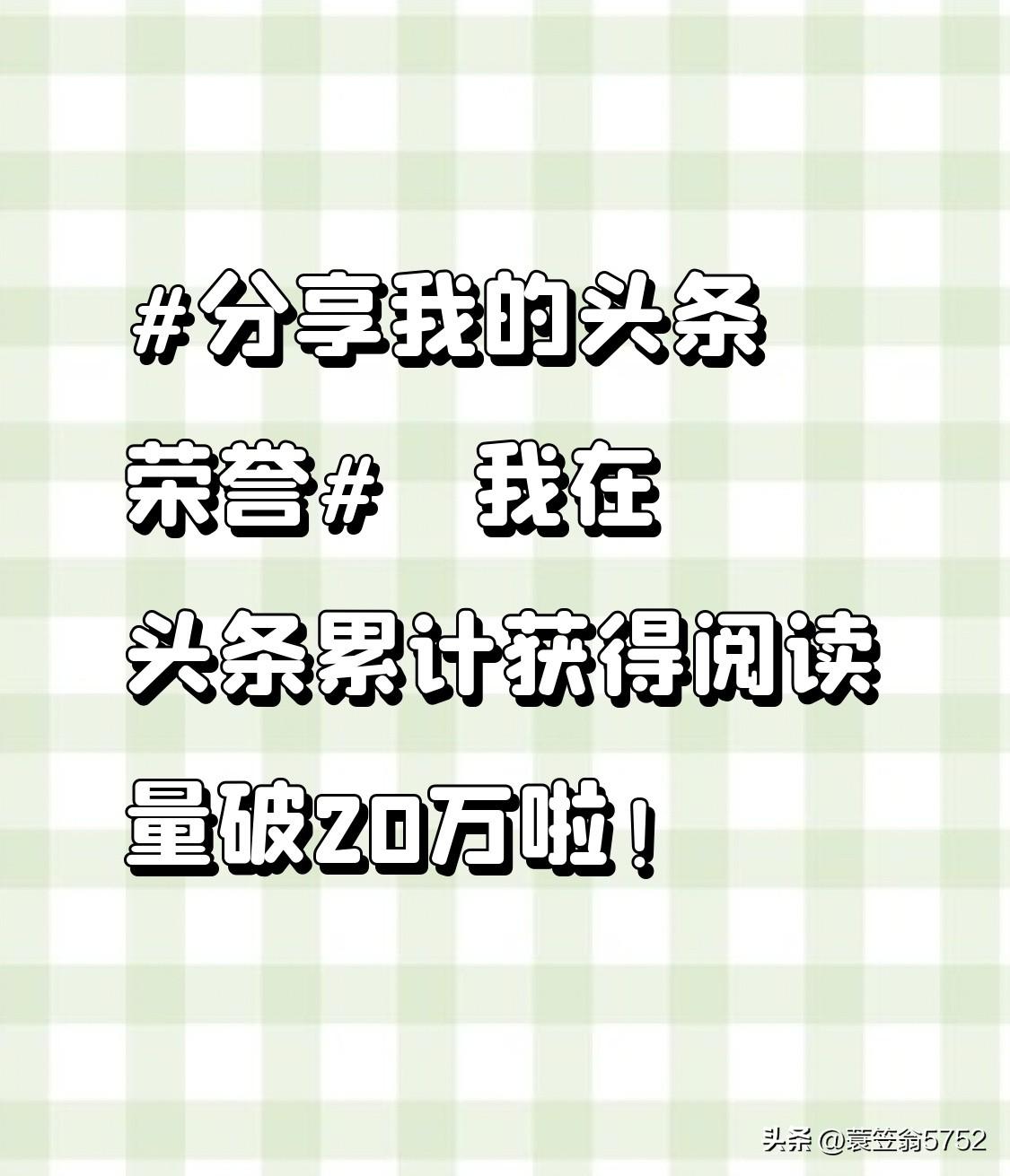 🤝我在头条累计获得阅读量破20万啦!