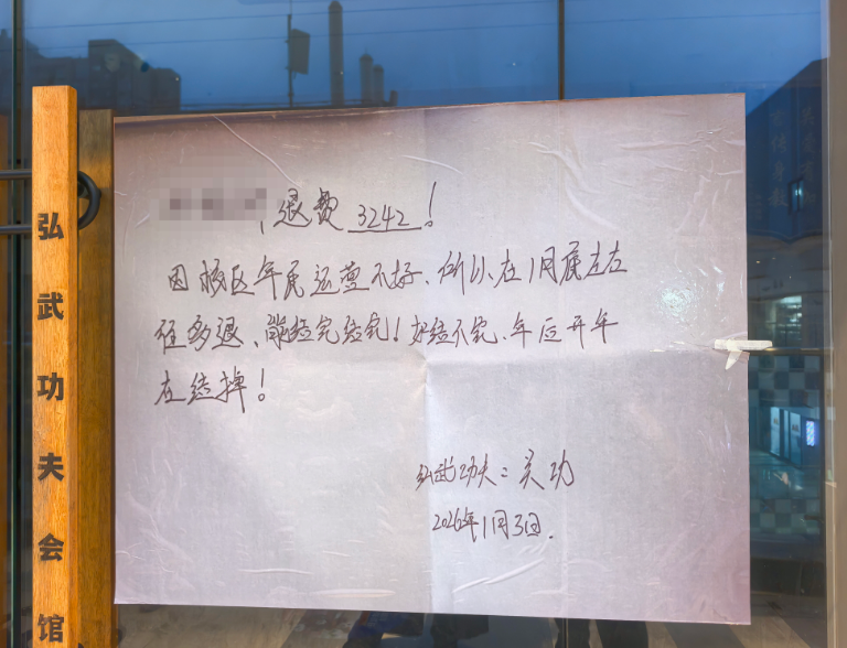 市民肖女士(化姓)的遭遇更为无奈。她的孩子喜爱武术,自2024年起便在弘武功夫吾悦店学习,先后花费一万余元报名精英班。2025年12月,她刚为孩子续费3000元,过了个年的功夫,便遭遇门店突然关停,课程无法继续。