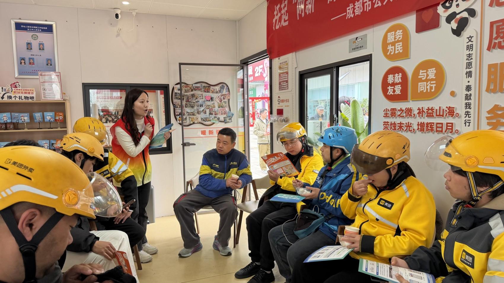 吸引他们来的是暖新驿站的“暖保宝”。这是成都市住房城乡建设局依托暖新驿站为核心阵地,新挂牌的服务点,面向新就业群体线下推介住房保障政策,以及提供指导服务等。