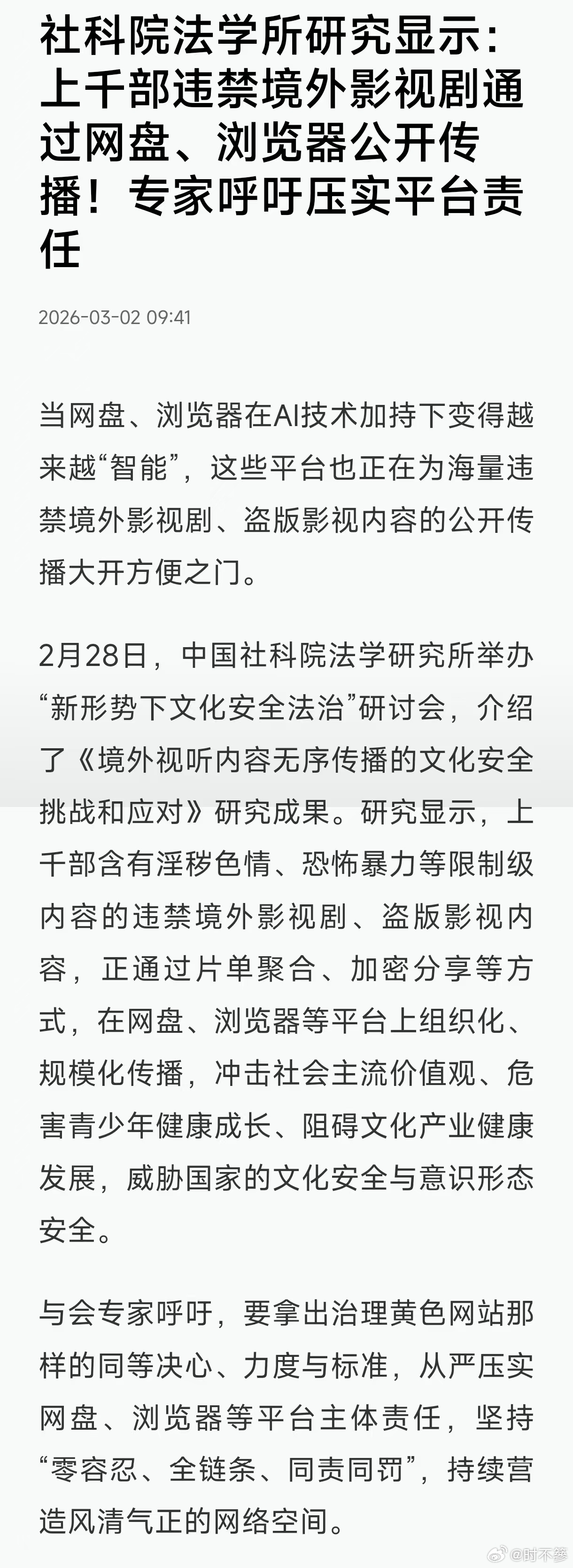 网盘成违规影视剧避风港内容安全不是选择题,而是必答题。对纵容违规影视剧传播的平台一查到底、从严处罚,才能打破“避风港”乱象,守护正版与合规。上千部违规境外剧在网盘唾手可得