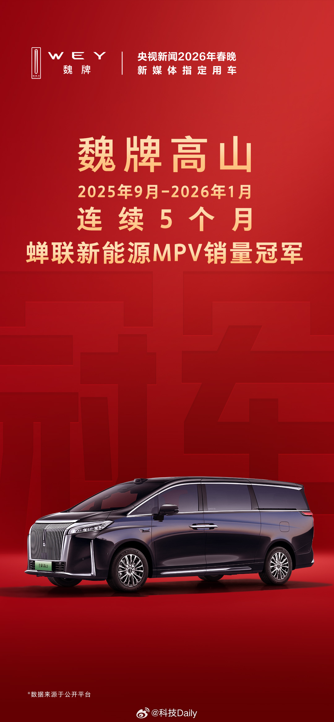 春晚加冕,实力大卖,魏牌高山 连续5个月蝉联冠军,买MPV就选高山,魏牌高山开启MPV家庭新时代 春晚在全国人民面前露脸,口碑更是持续放大。