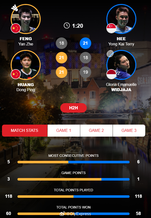 【全英赛混双首轮凤凰组合涉险过关】2026全英羽毛球公开赛羽联超级赛 3月3日伯明翰,全英羽毛球公开赛揭幕。在混双首轮比赛中,冯彦哲/黄东萍在18-21丢掉首局后,以21-18/21-19连扳两局,艰难战胜新加坡和印尼的跨国组合许永凯/维德贾贾。其中决胜局一度以9-14落后。